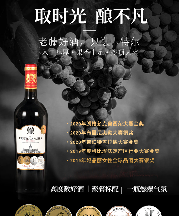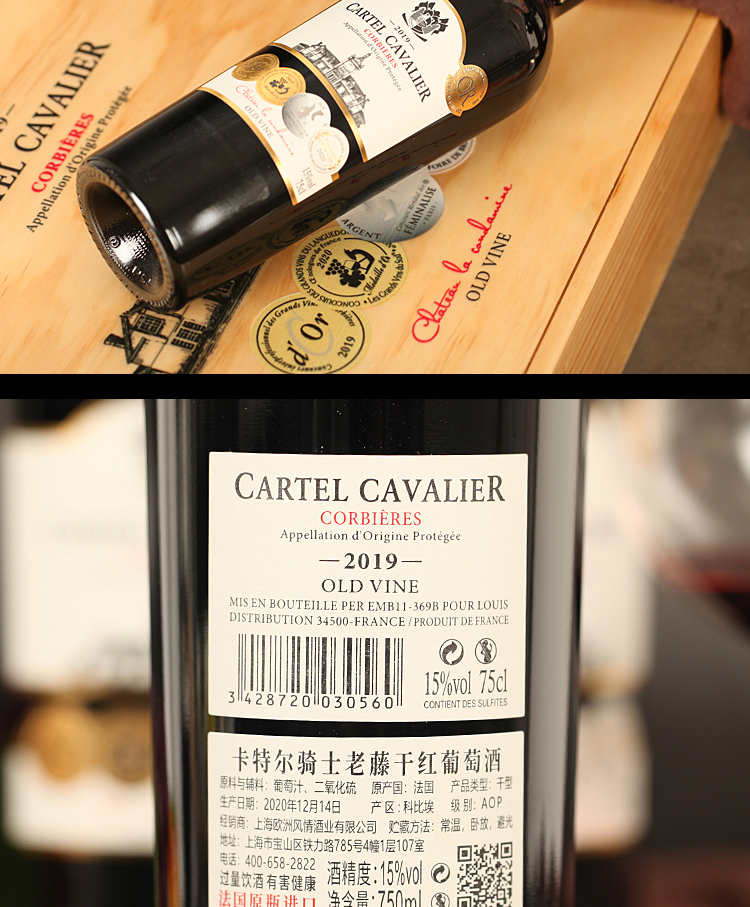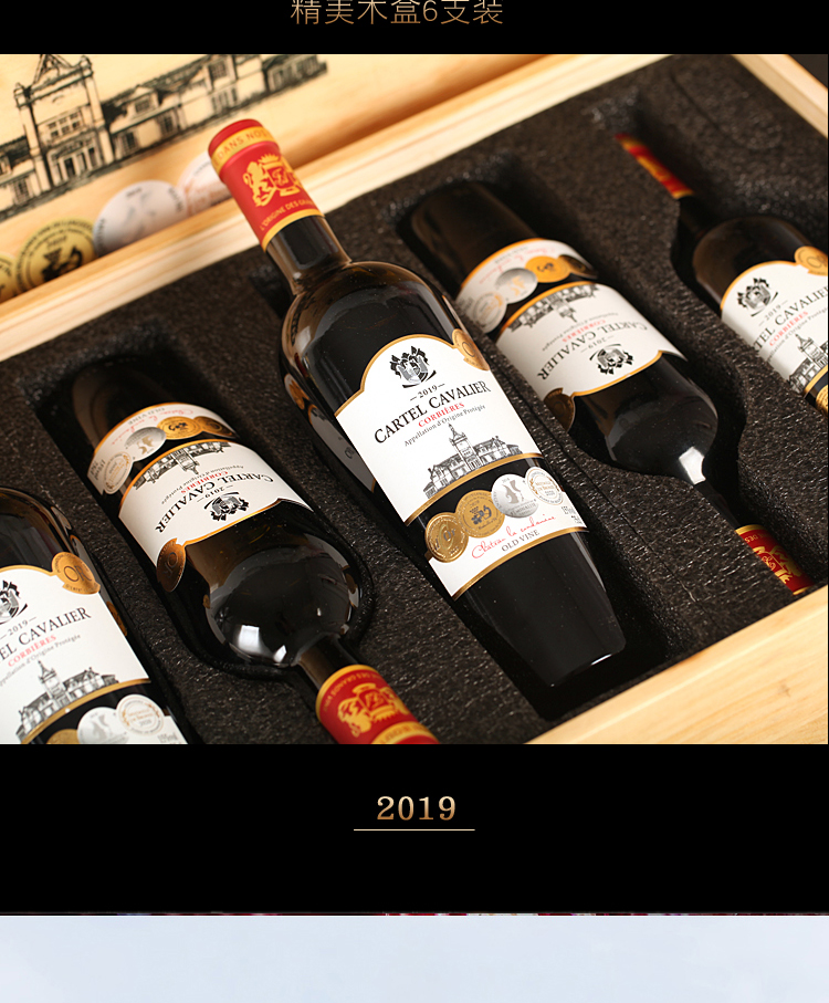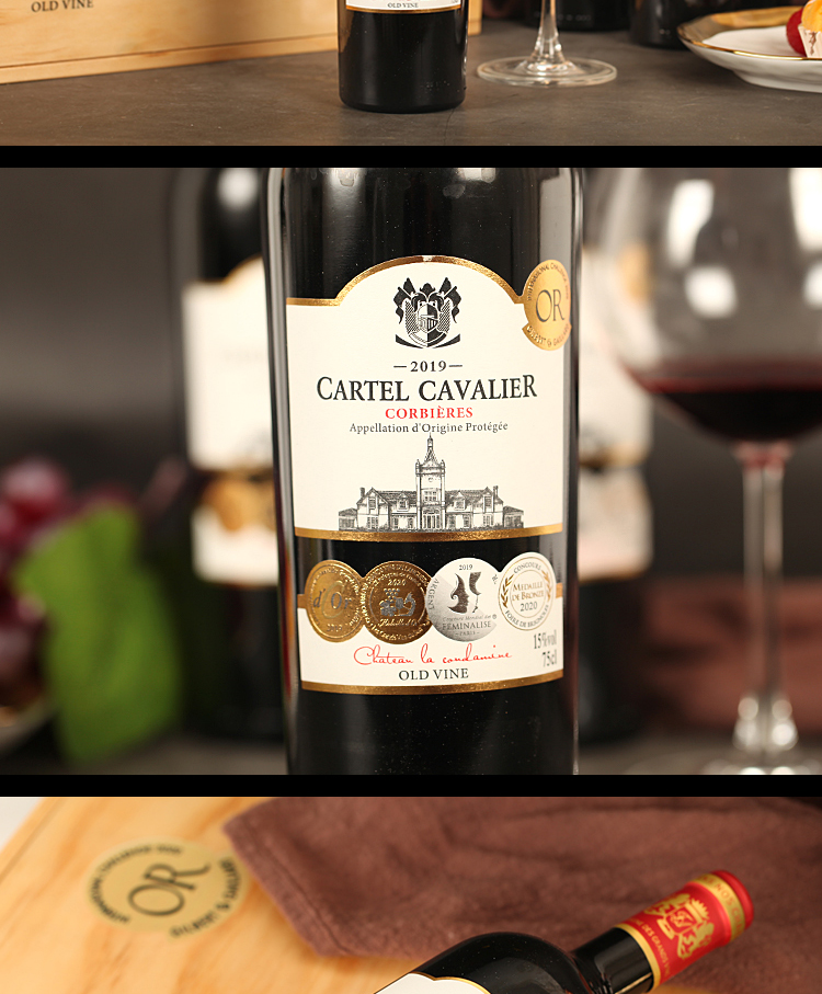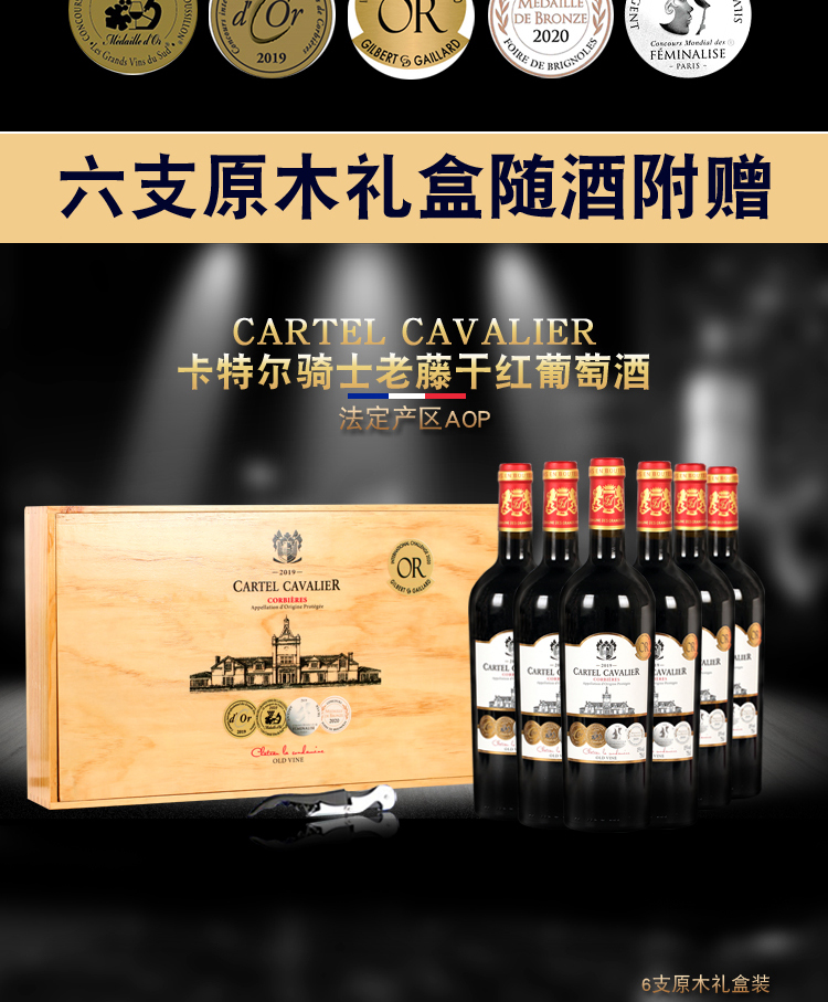 卡特尔法国进口红酒获5奖项骑士老藤干红葡萄酒750ml*6支精美木箱包装
