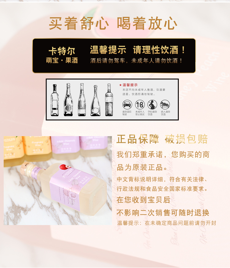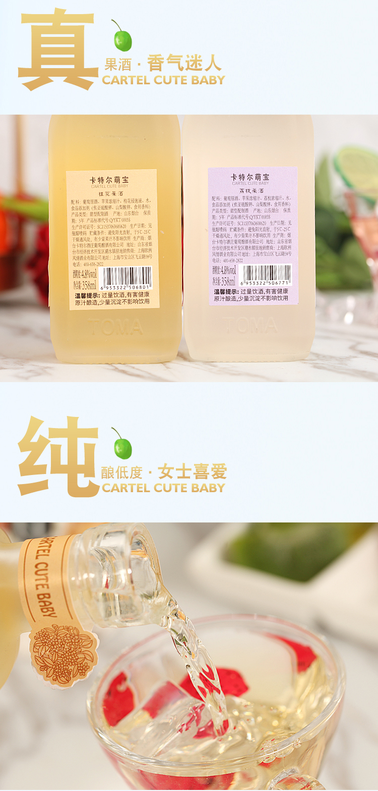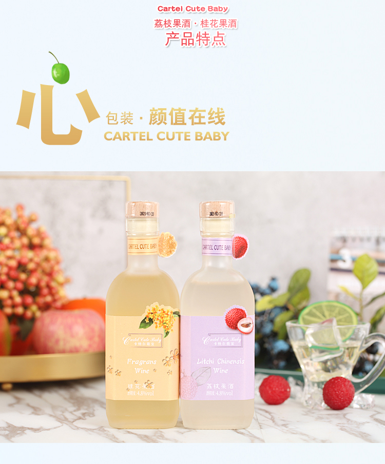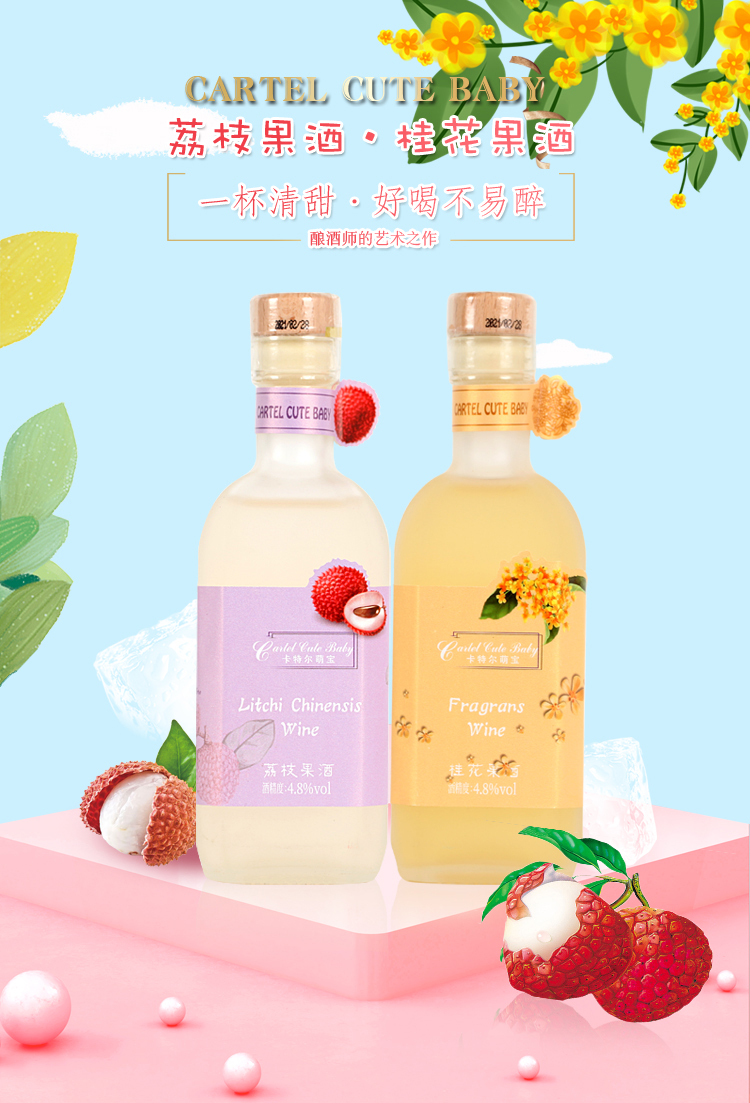 商品名称:卡特尔高颜值甜酒女士果酒微醺少女起泡酒荔枝口味和桂花口味组合358ml*2支