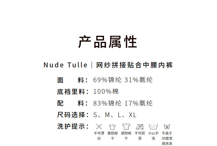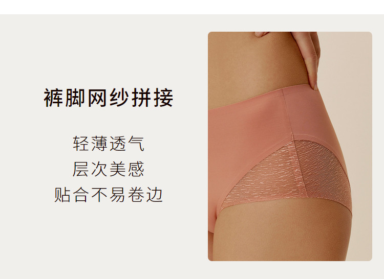 商品名称:NEIWAI女士网格拼接贴合中腰内裤轻薄透气舒爽亲肤女三角裤 374218