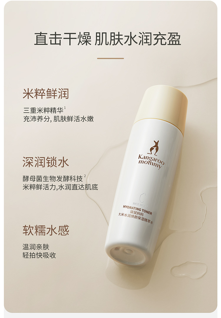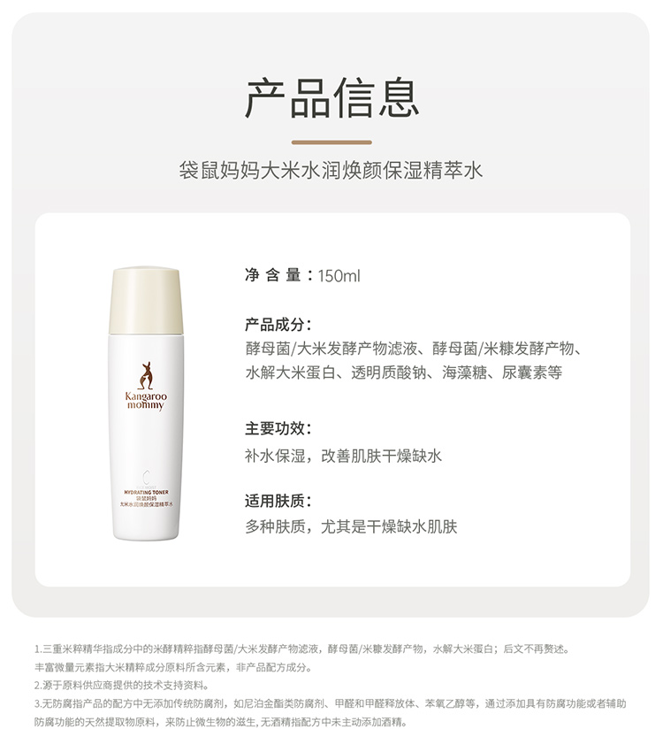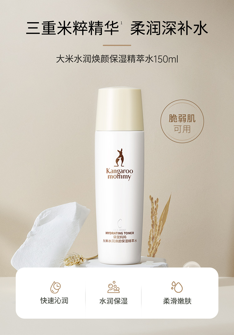 商品名称:【敏感肌可用】袋鼠妈妈大米水润焕颜保湿精粹水准孕妇学生适用柔肤水补水护肤品150ml