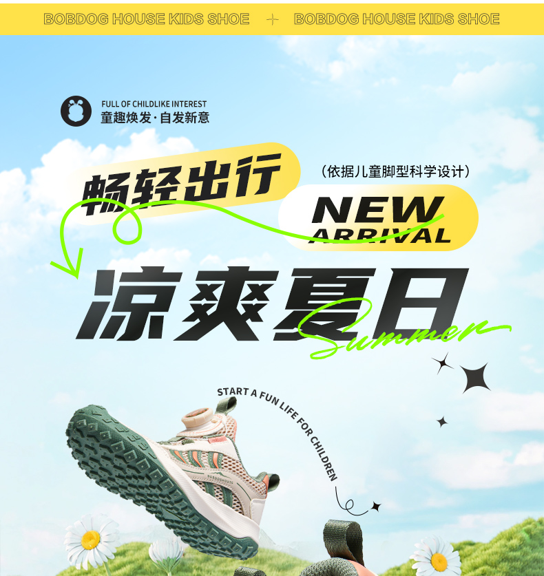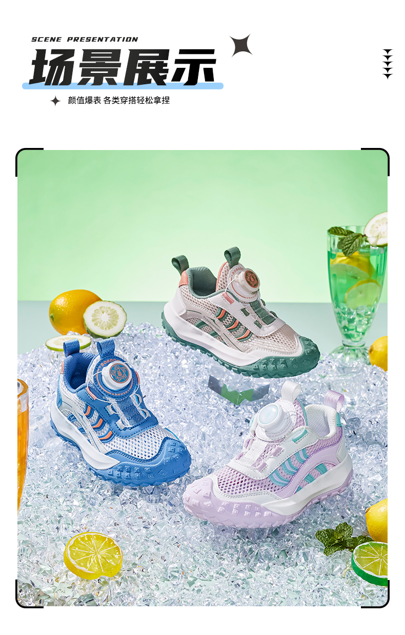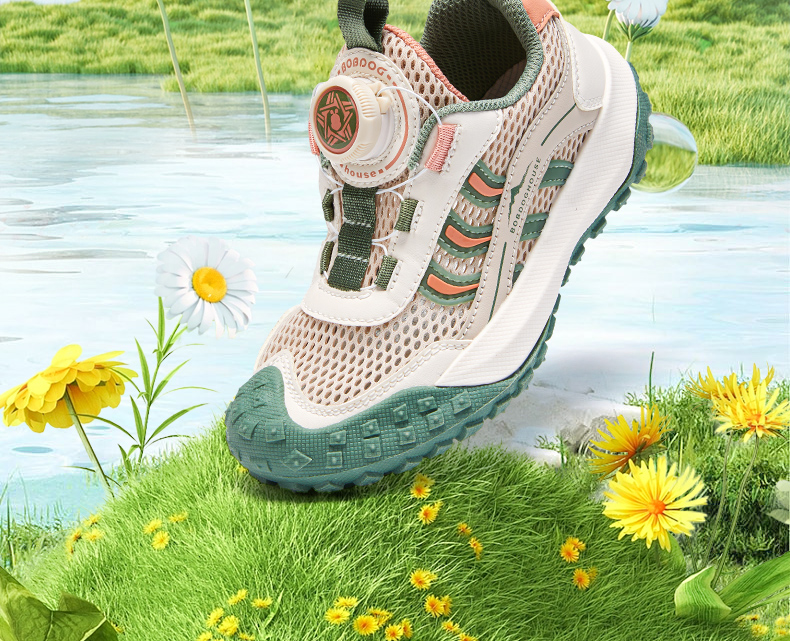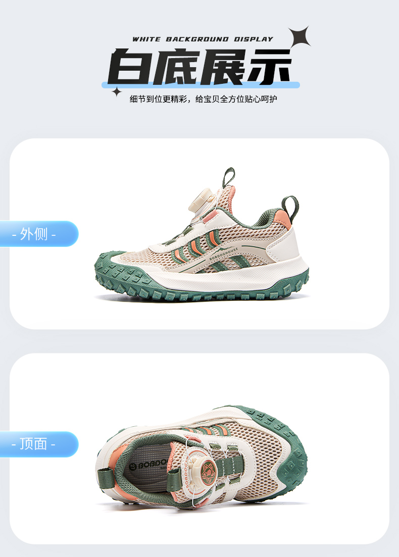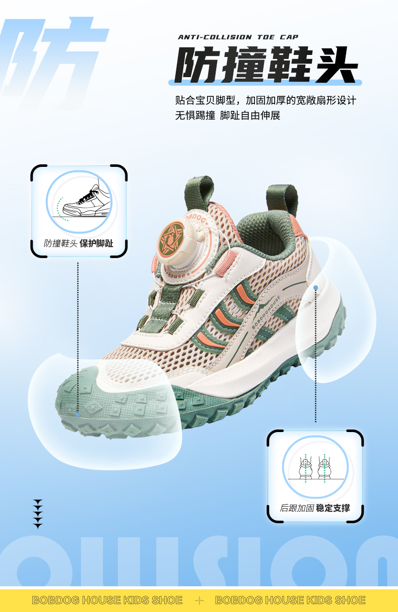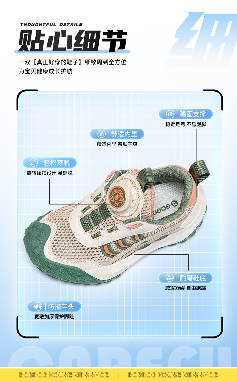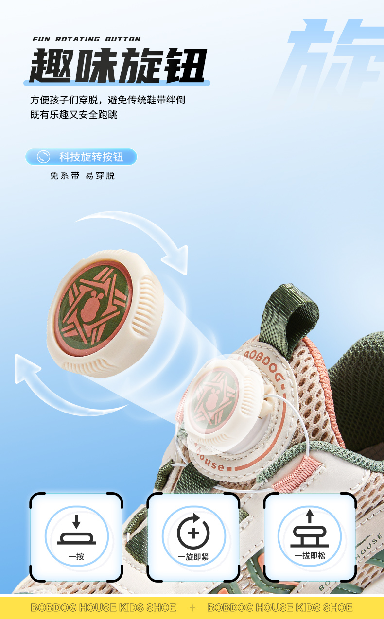 商品名称:【热销爆款】2025夏季新款巴布豆house童鞋儿童网面透气户外旋转纽扣男女学生运动鞋
