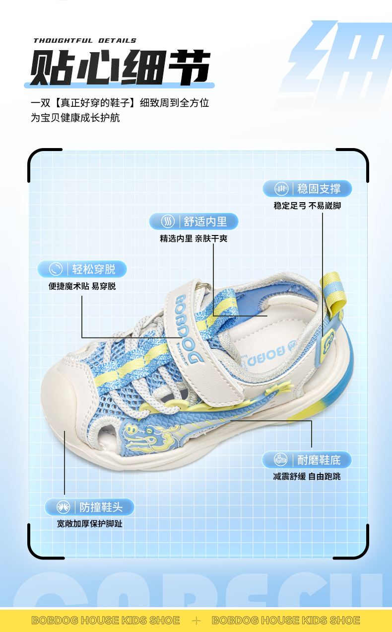 商品名称:【热销爆款】2025夏季新款巴布豆house童鞋男女童包头网面透气凉鞋中大童休闲沙滩鞋