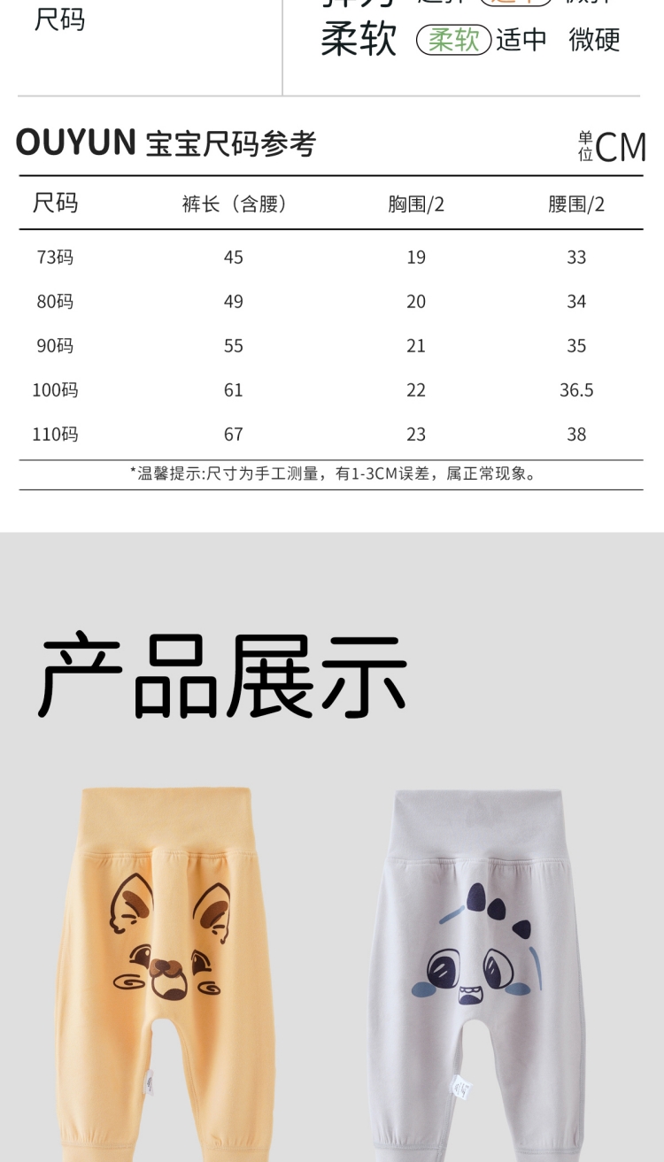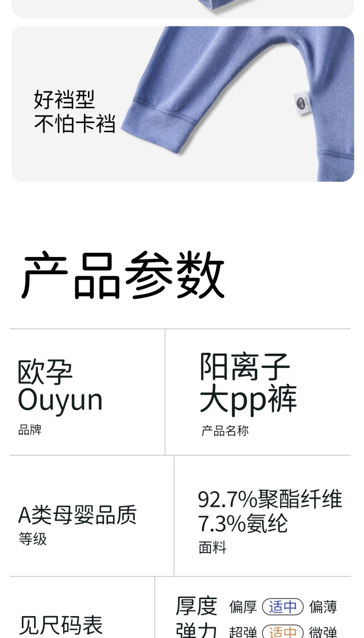 商品名称:欧孕婴儿阳离子裤子宝宝高腰护肚秋裤男童女童大屁屁裤秋冬PP裤打底长裤