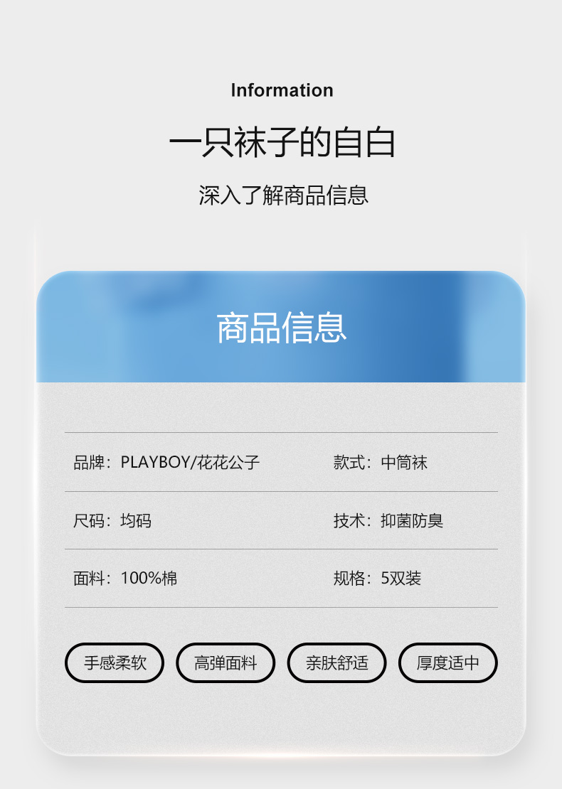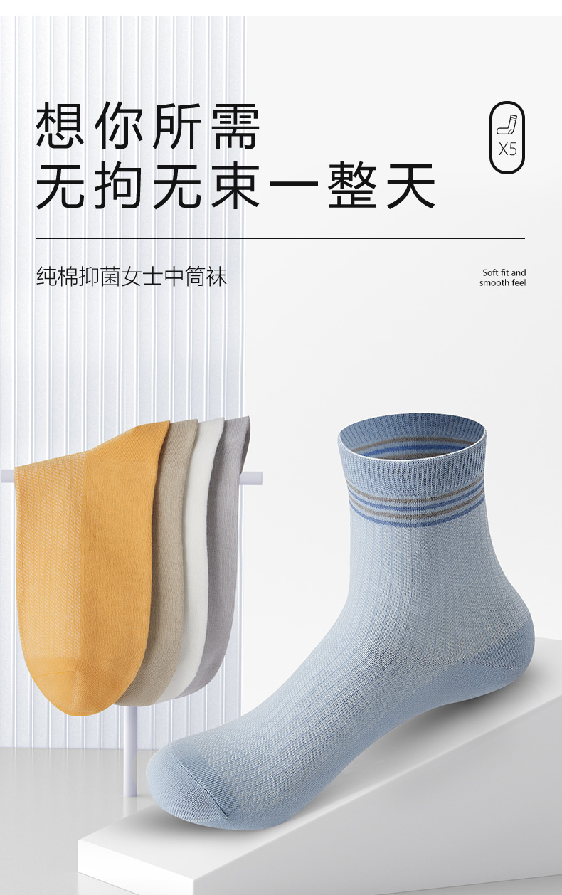 商品名称:花花公子5双装女士袜子夏季中筒袜舒适防臭吸汗全棉袜子纯棉女生袜子成人夏天女袜