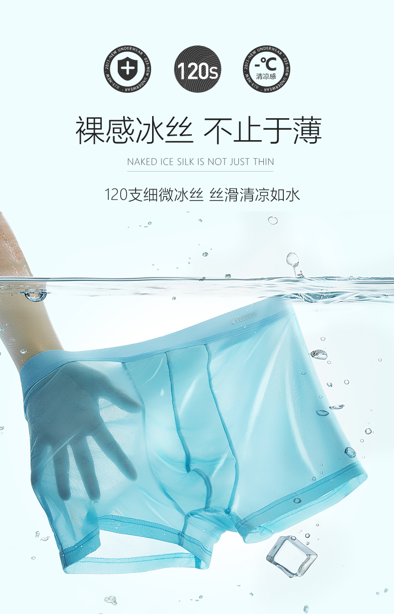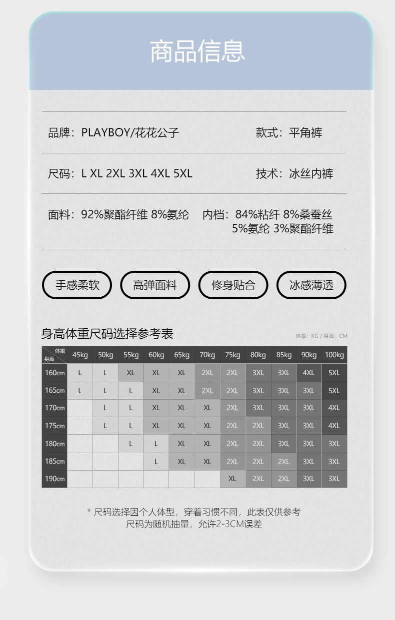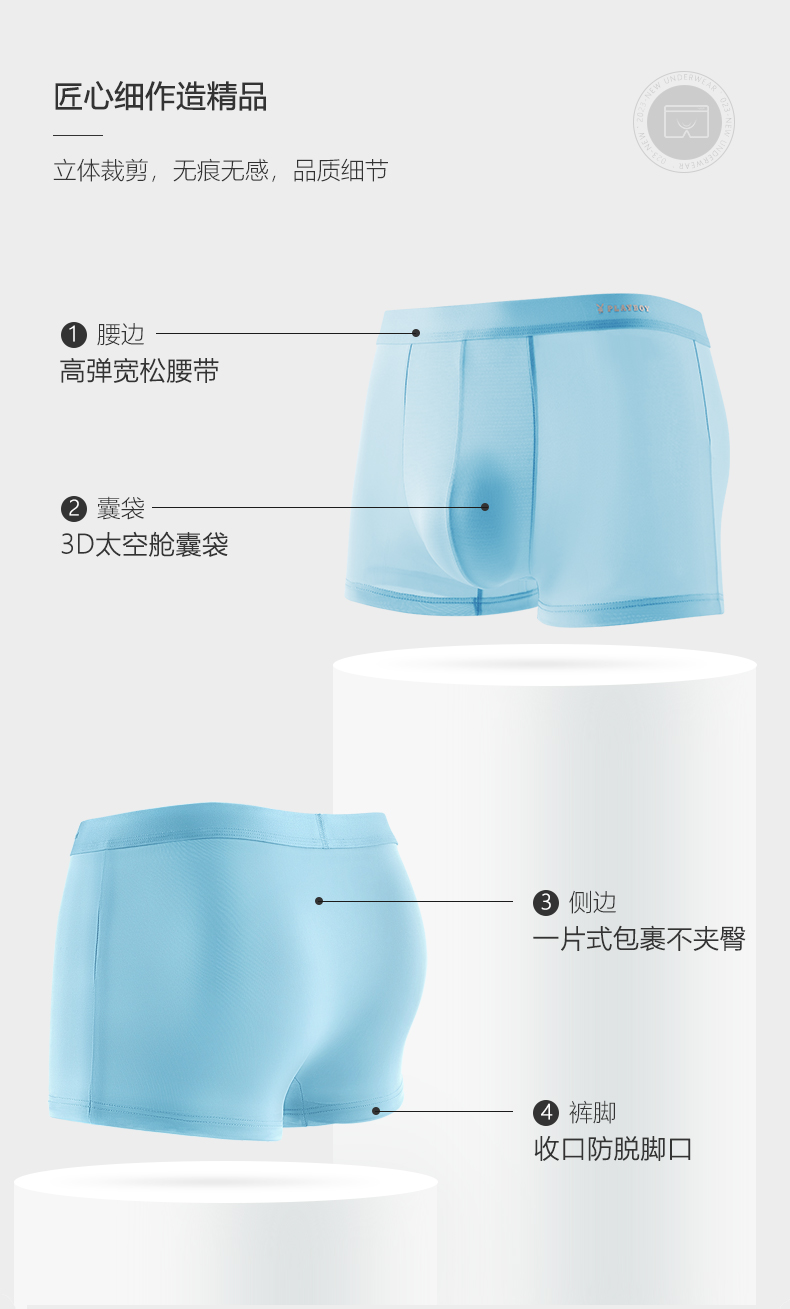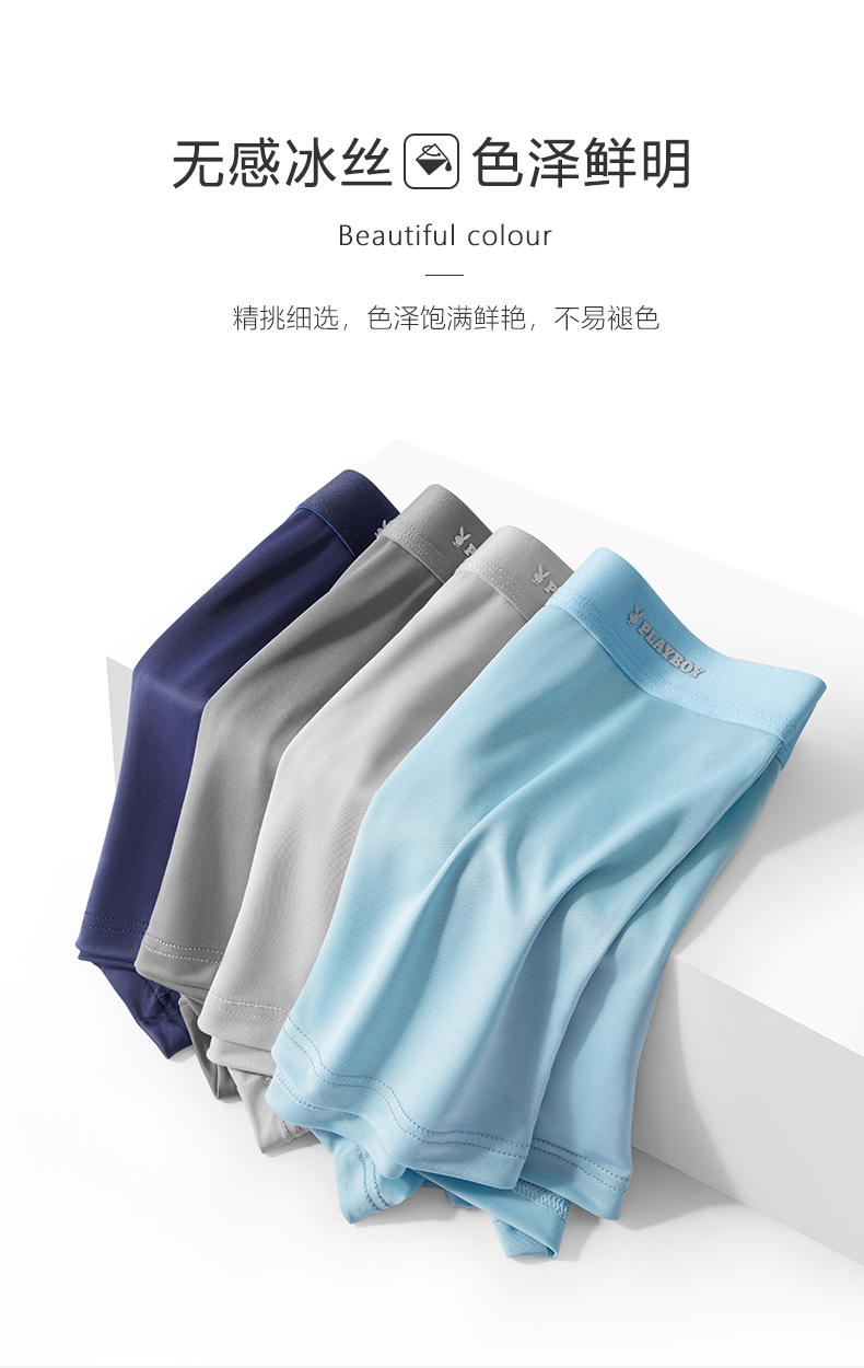 商品名称:花花公子3条装4条装男士内裤车缝冰丝内裤抗菌无痕四角裤男生透气平角短裤头男式底裤