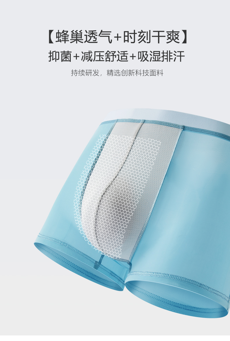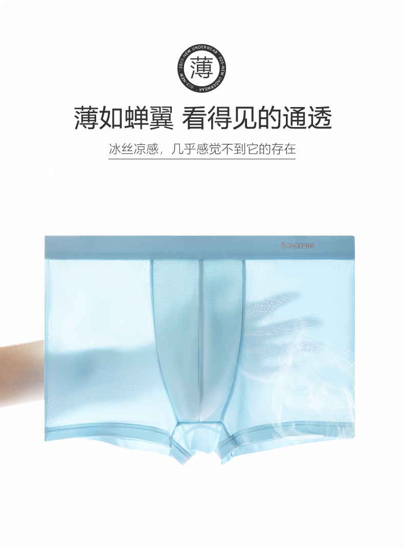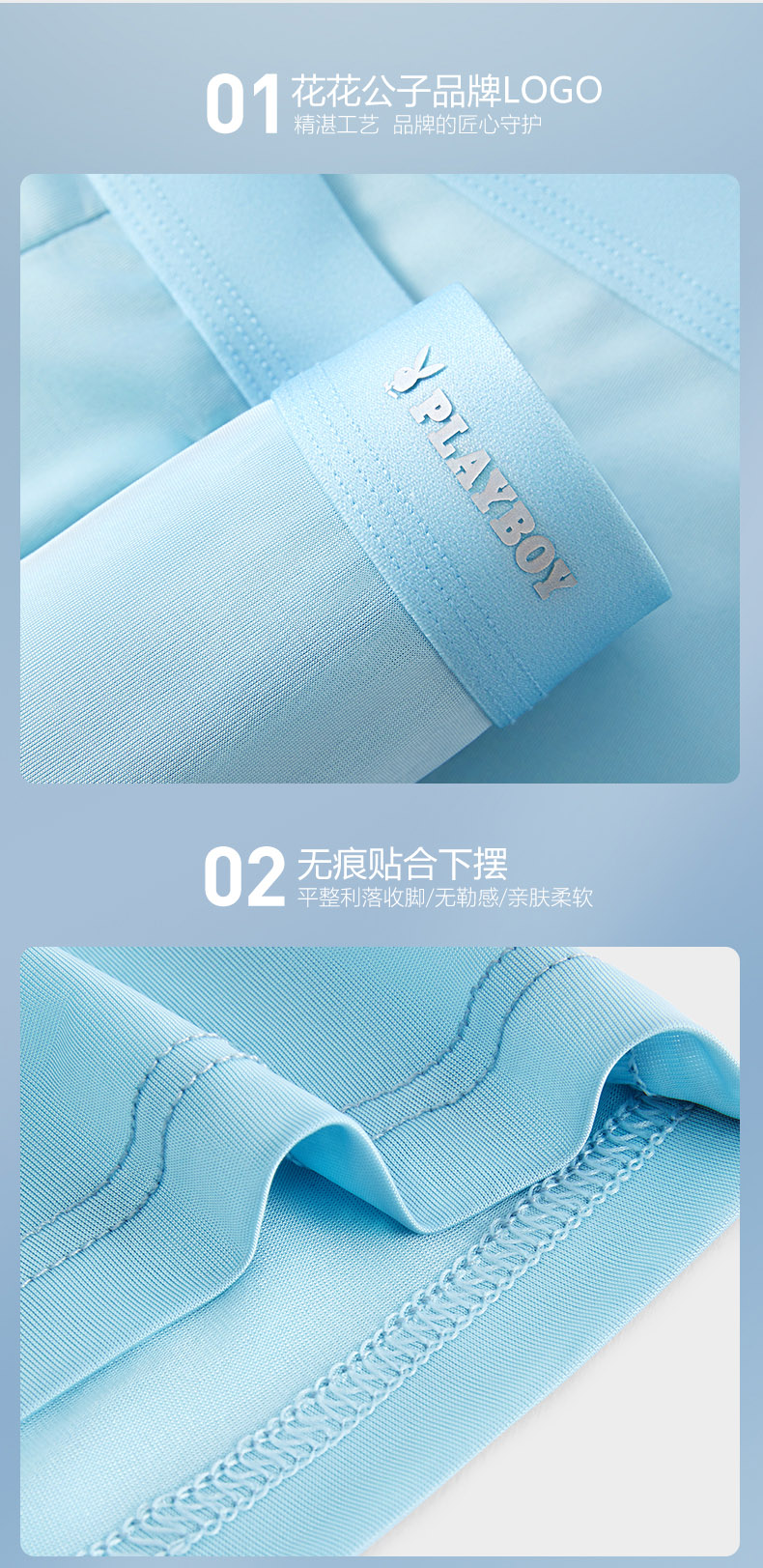 花花公子3条装4条装男士内裤车缝冰丝内裤抗菌无痕四角裤男生透气平角短裤头男式底裤
