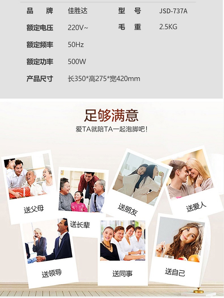 商品名称:佳胜达熏蒸足浴盆JSD-737A旋钮开关加热泡脚自助按摩电动洗脚盆恒温洗脚盆