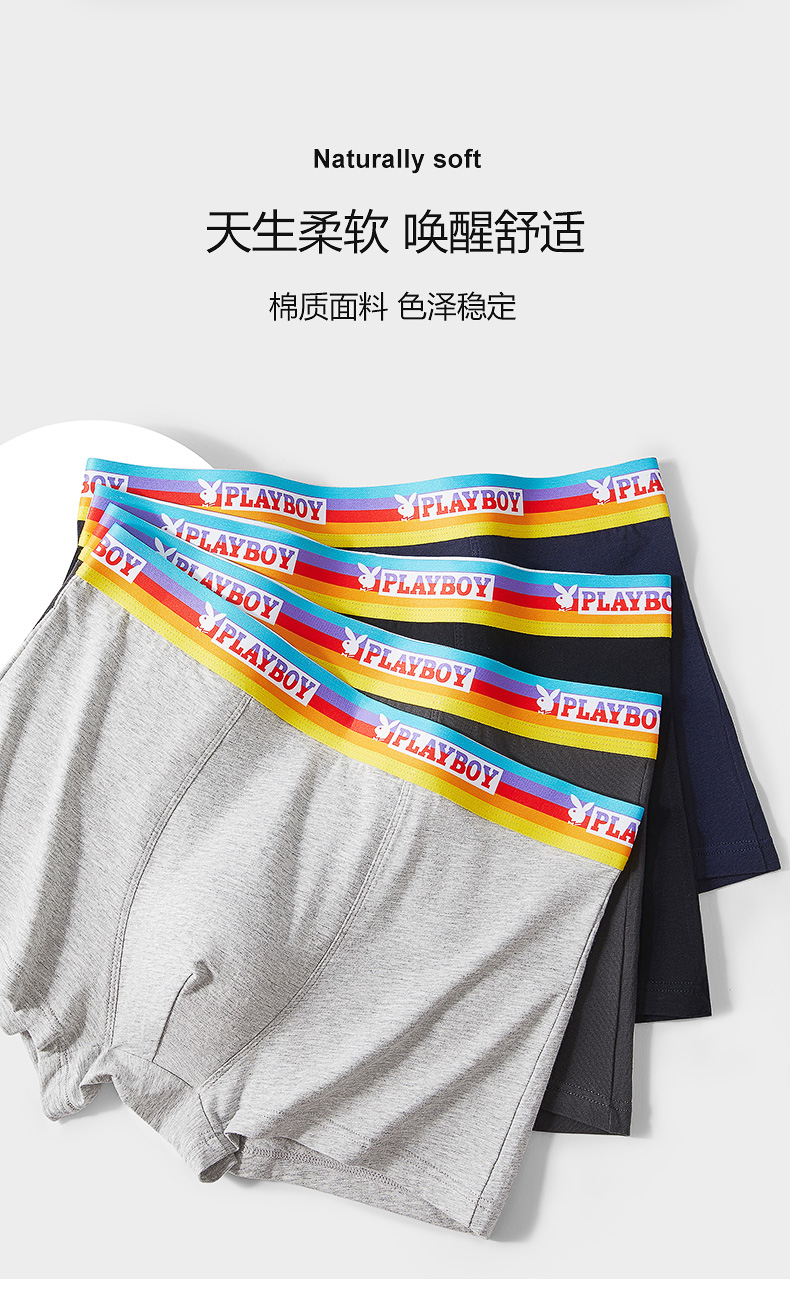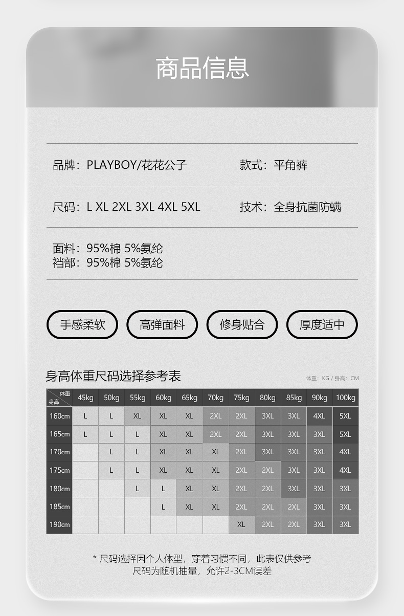 商品名称:花花公子3条装男士内裤纯棉男生新款四角裤全棉大码平角男式成人短裤
