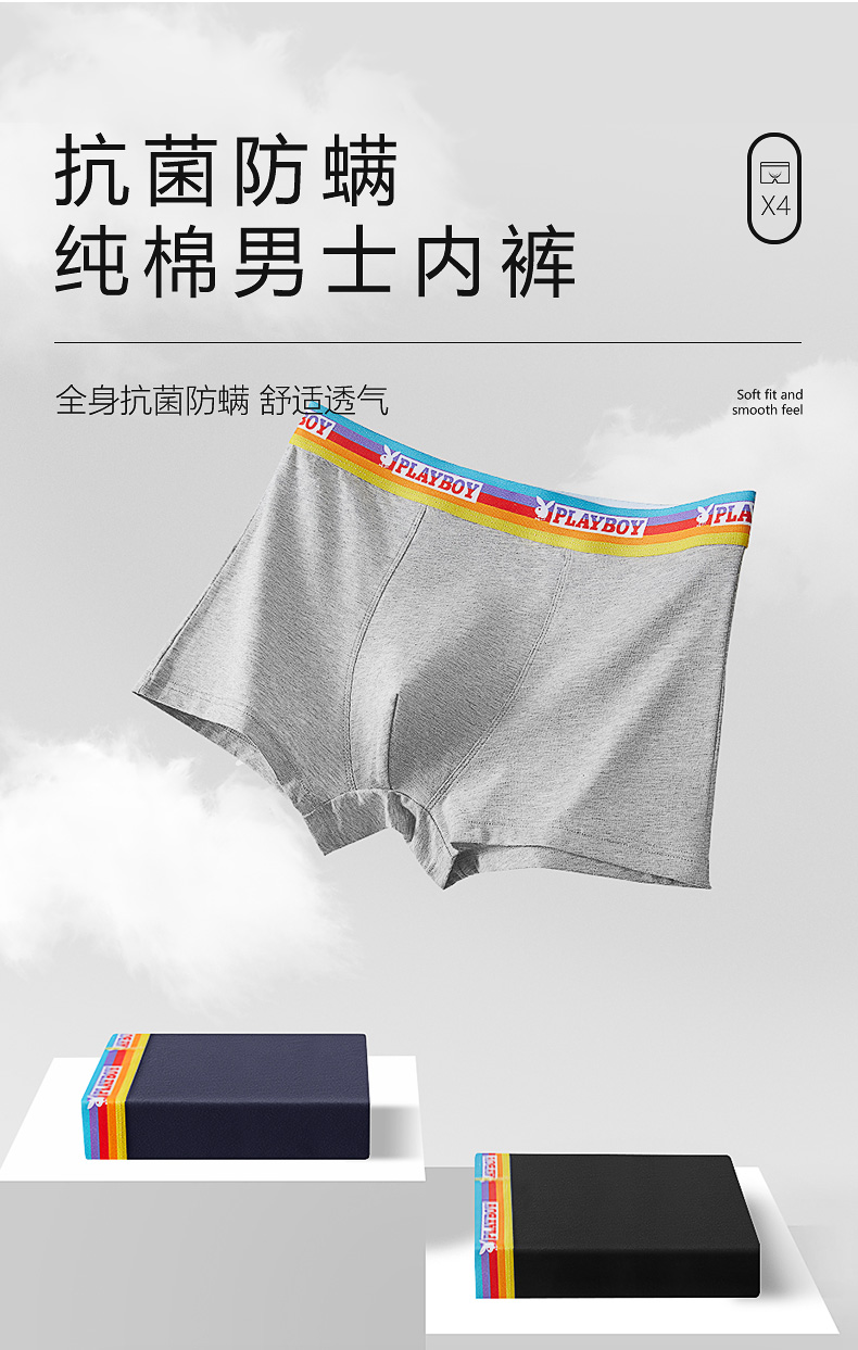 花花公子3条装男士内裤纯棉男生新款四角裤全棉大码平角男式成人短裤