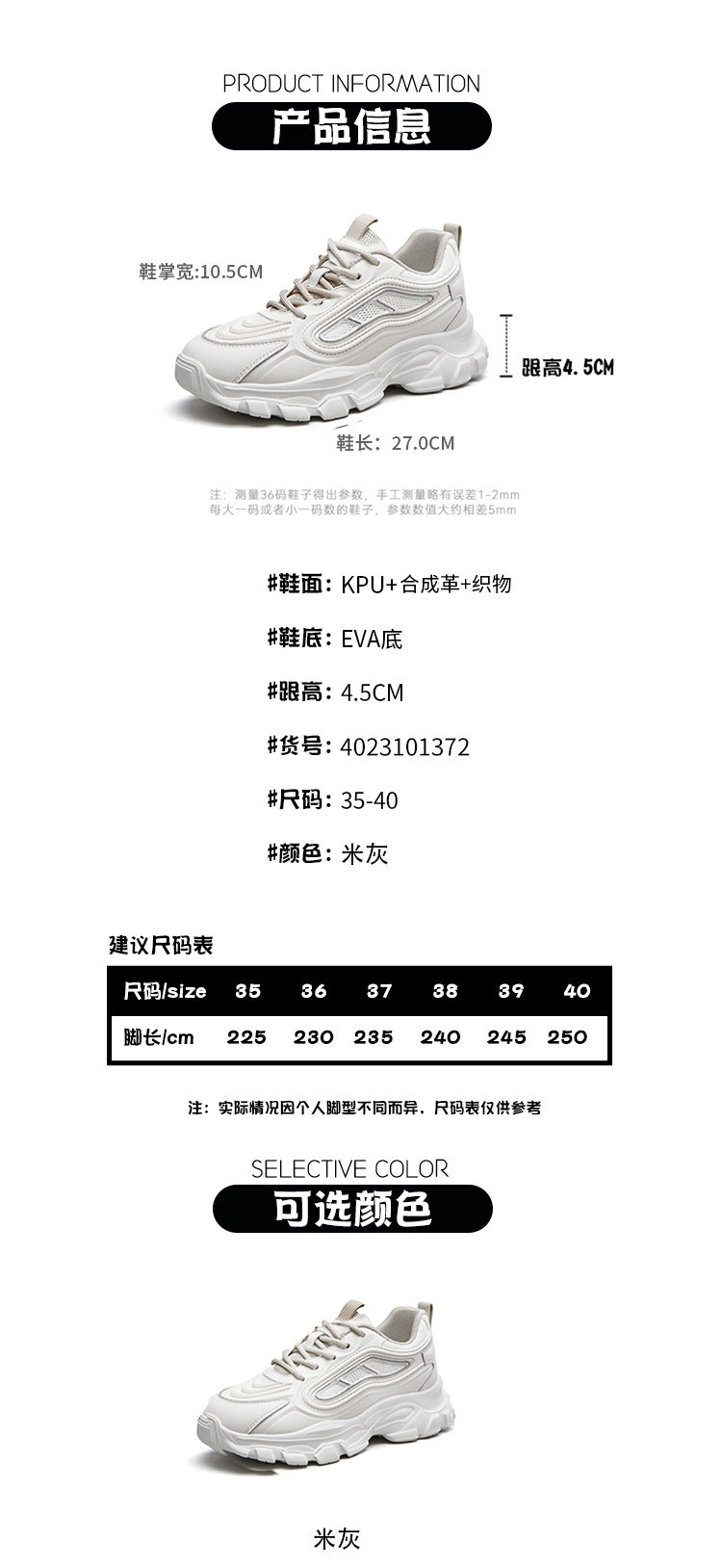 商品名称:春夏休闲运动鞋老爹鞋百搭女鞋透气网面鞋舒适厚底鞋 086487