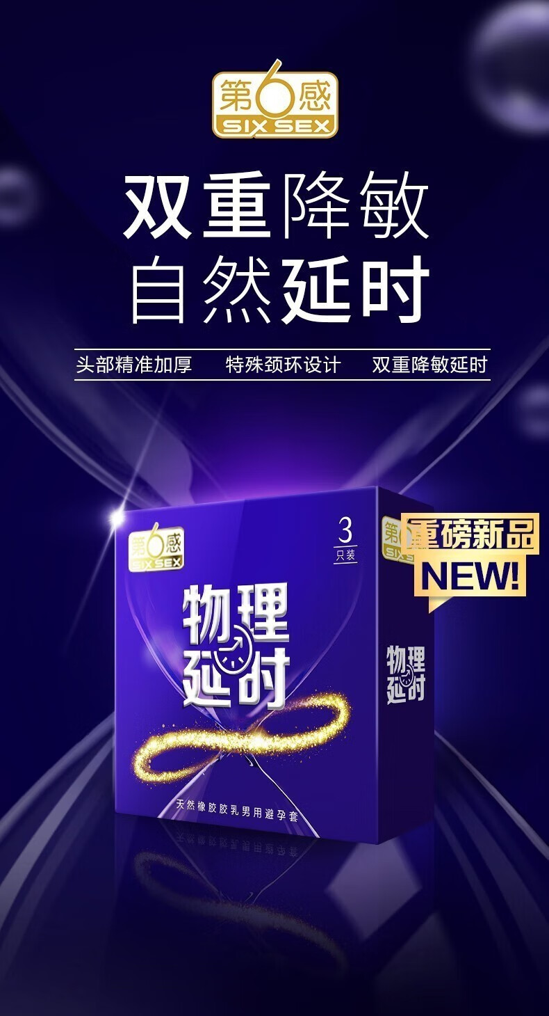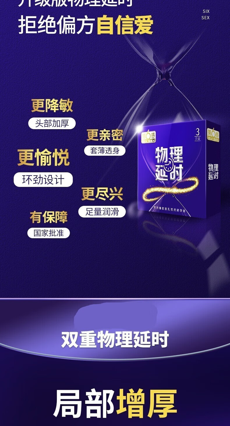 商品名称:第六感物理延时持久3只装避孕套byt安全套延时加厚颈环降敏超薄自然延时情趣套套