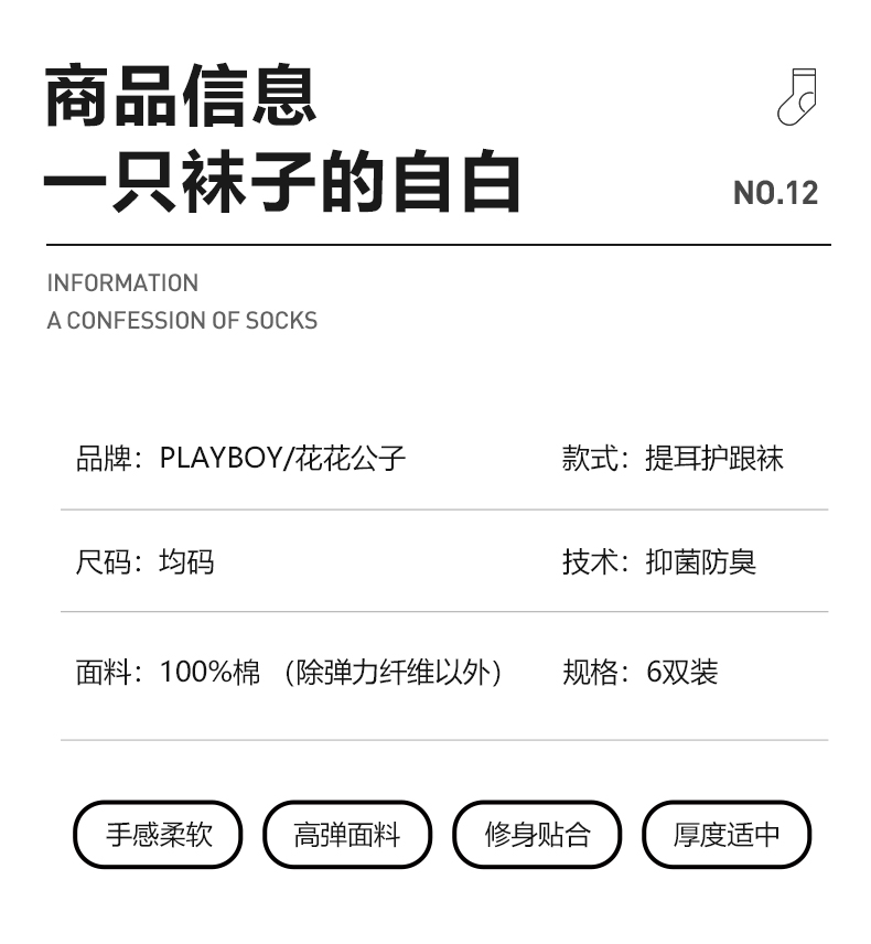 商品名称:花花公子6双装男士袜子短袜春夏季纯棉全棉防臭吸汗运动船袜男袜子成人袜子男短袜子
