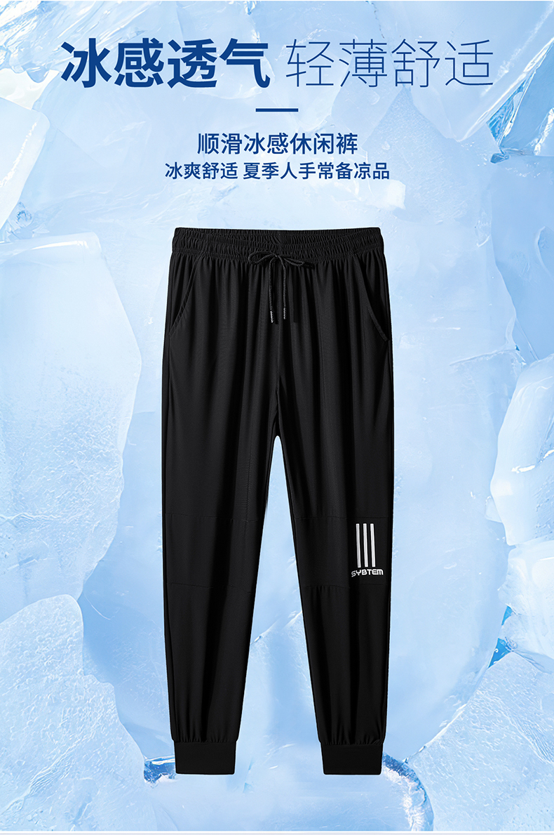 商品名称:曼西尔奴男士时尚锦纶冰丝速干柔软亲肤舒适百搭印花束脚休闲裤115238TM