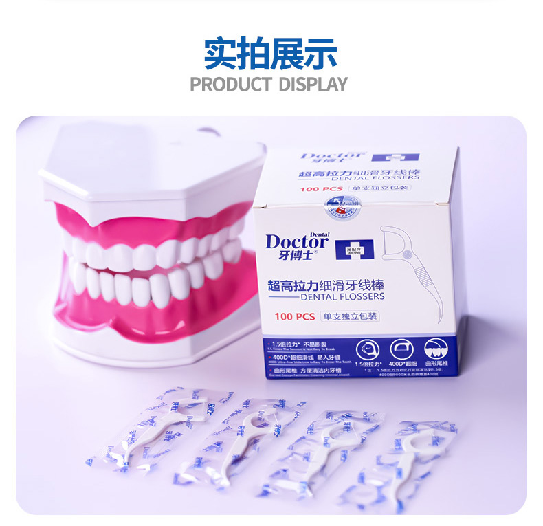 商品名称:牙博士超高拉力细滑牙线棒100支/盒(单支独立包装)