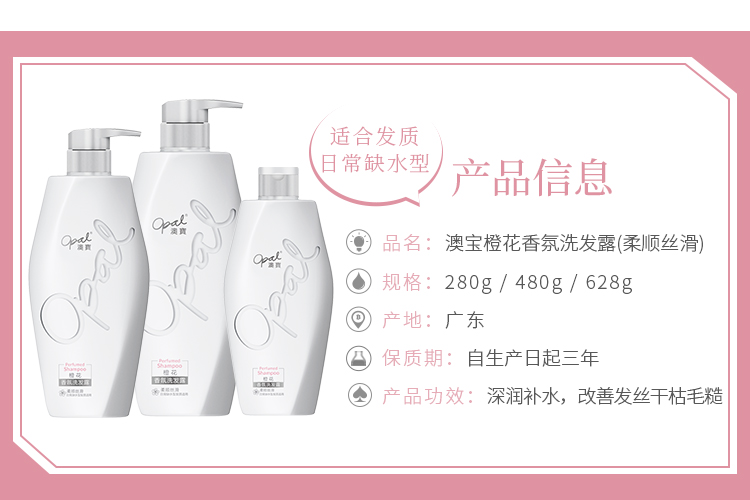 商品名称:澳宝香氛洗发露成人控油去屑止痒蓬松护发素洗头膏精油持久留香小苍兰橙花鸢尾628g