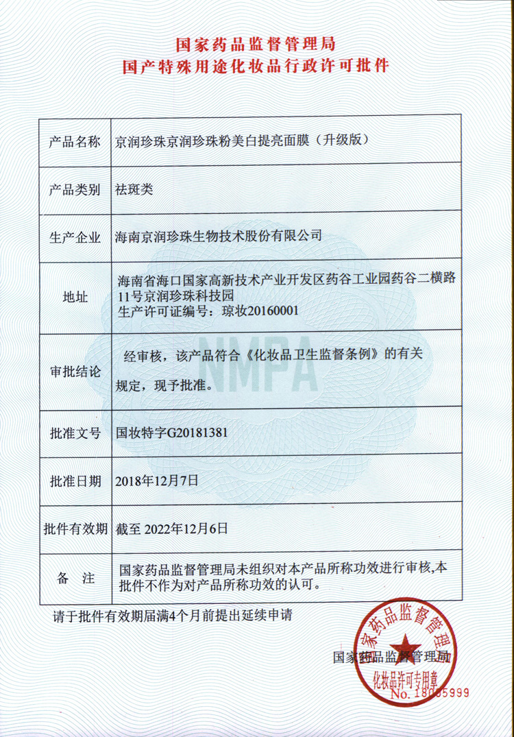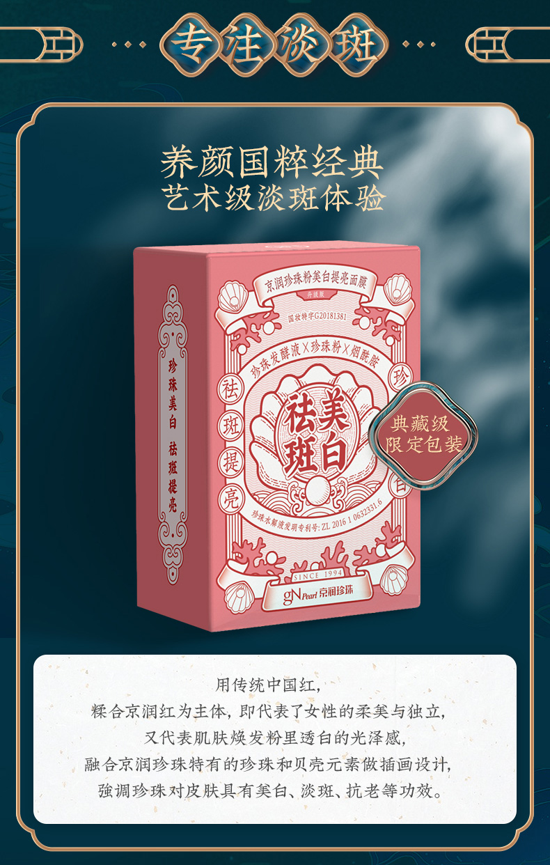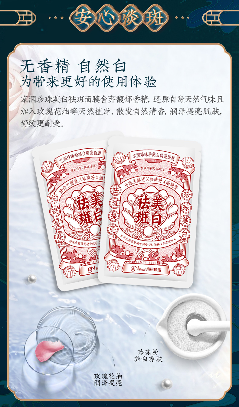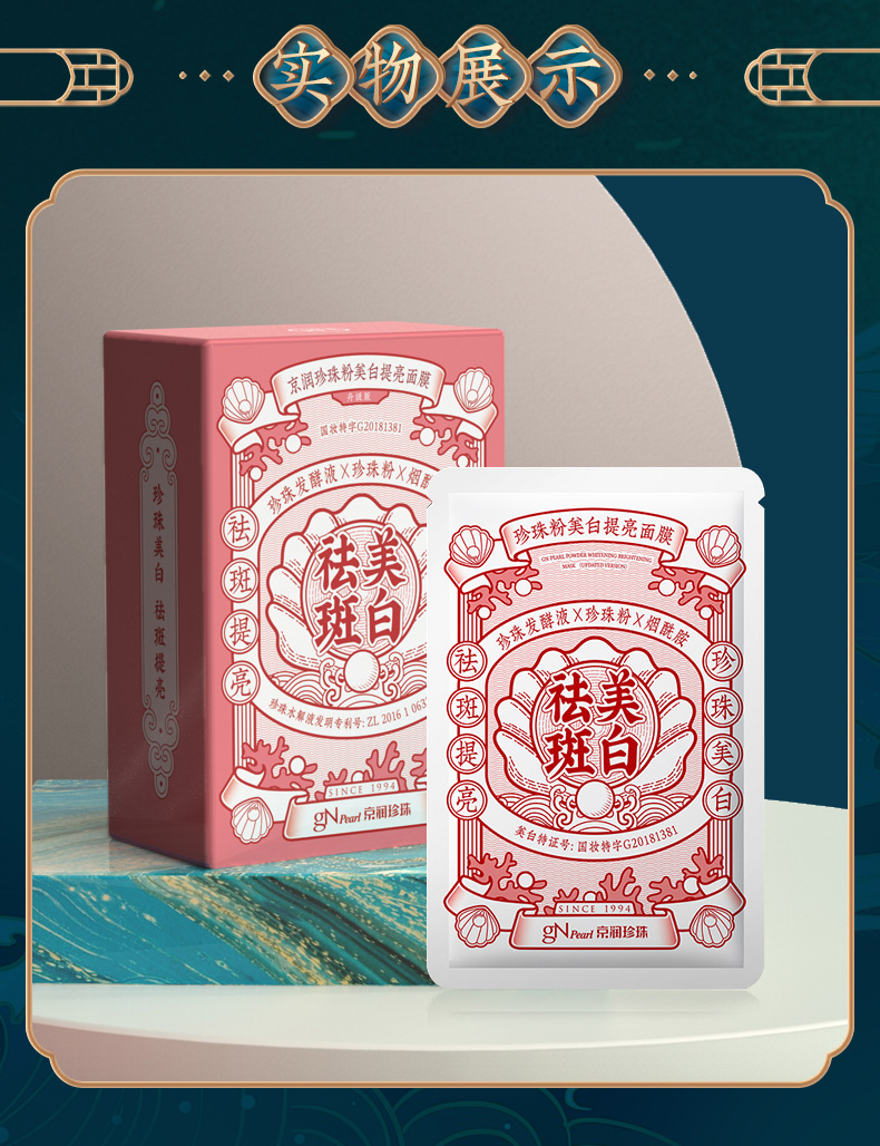 商品名称:【实体店同款】京润珍珠粉美白提亮面膜20片淡斑祛斑抗糖抗氧修护淡痘印贴片式面膜女