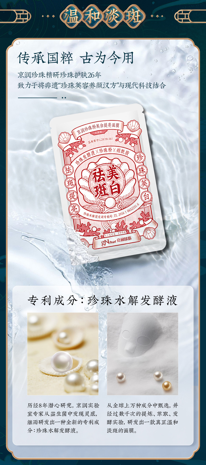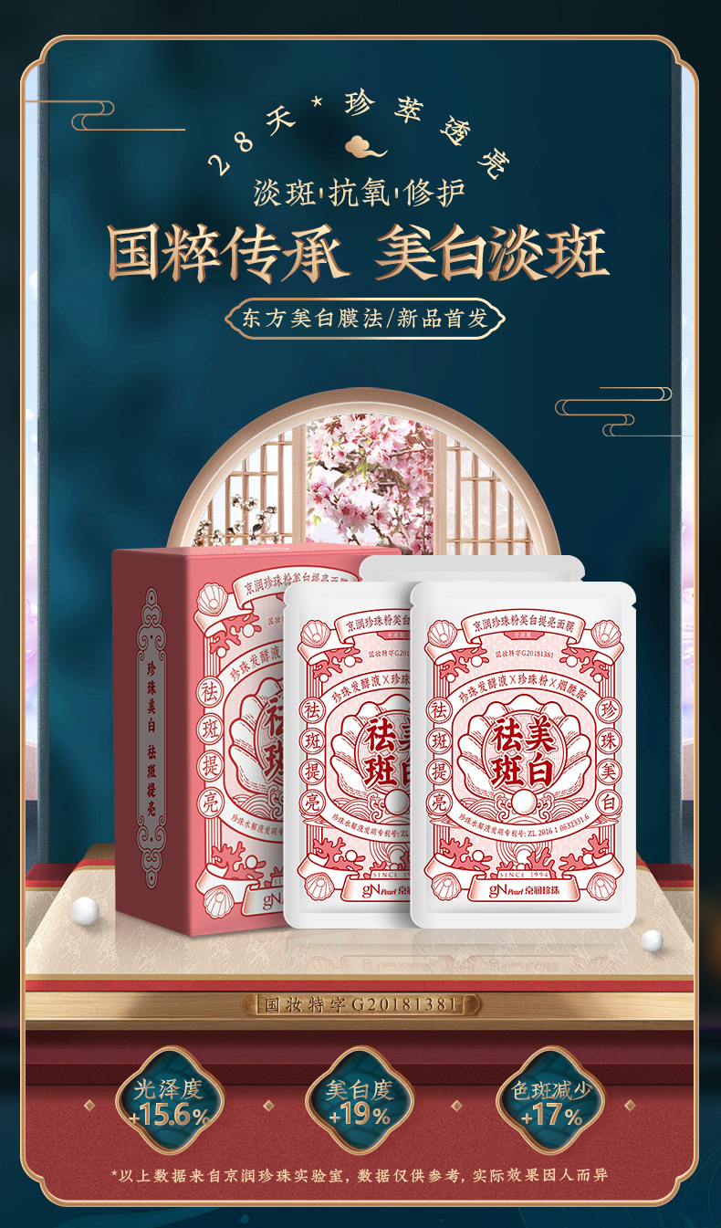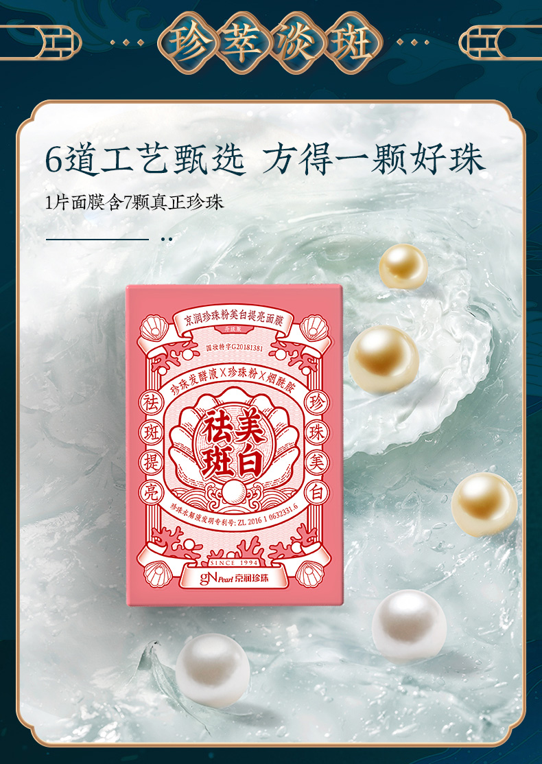 【实体店同款】京润珍珠粉美白提亮面膜20片淡斑祛斑抗糖抗氧修护淡痘印贴片式面膜女