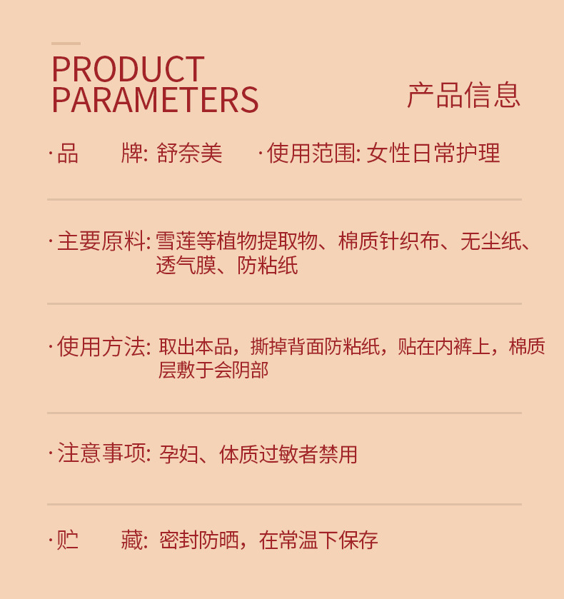 商品名称:舒奈美私密雪莲护理中药护垫女性私密护理妇科护垫草本雪莲贴