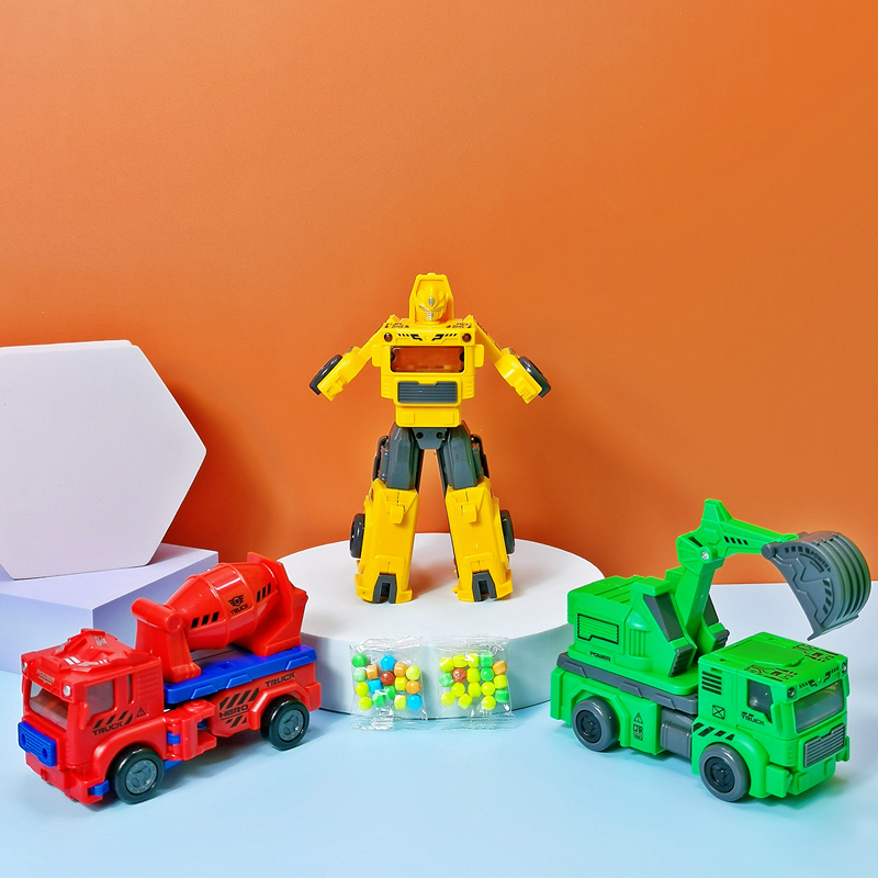 商品名称:糖果总动员2合体大力王金刚变形工程车系列儿童益智变形糖果玩具超市供货3g/个