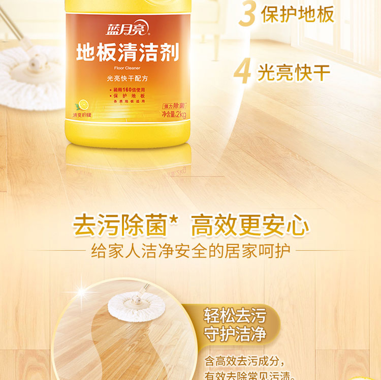 商品名称:蓝月亮 地板清洁剂2kg地板除菌快干光亮保护