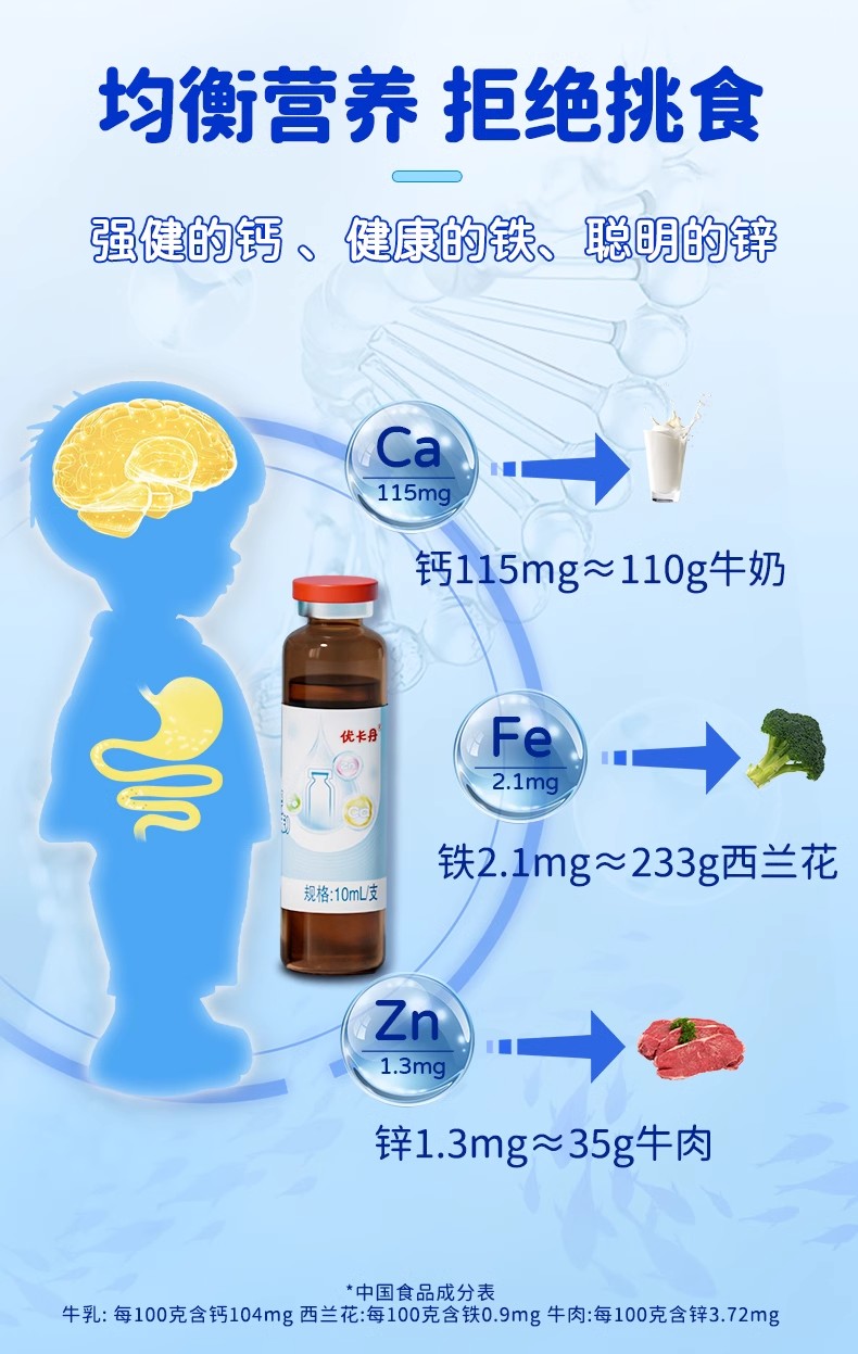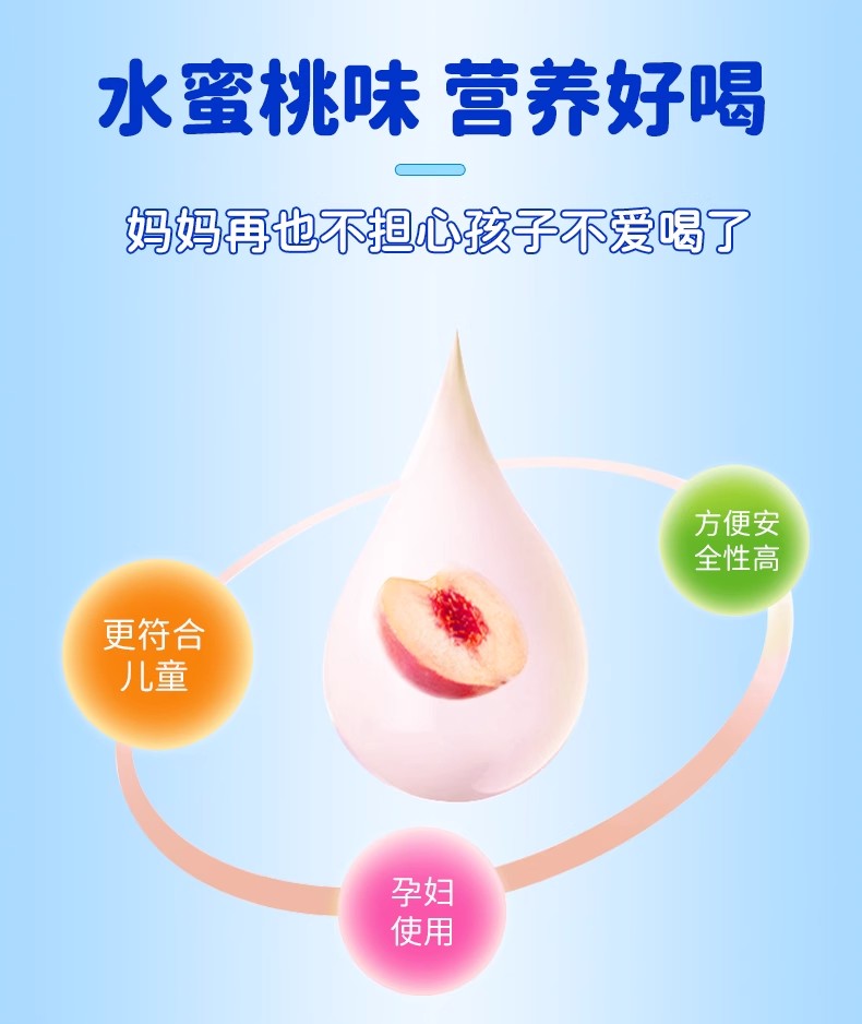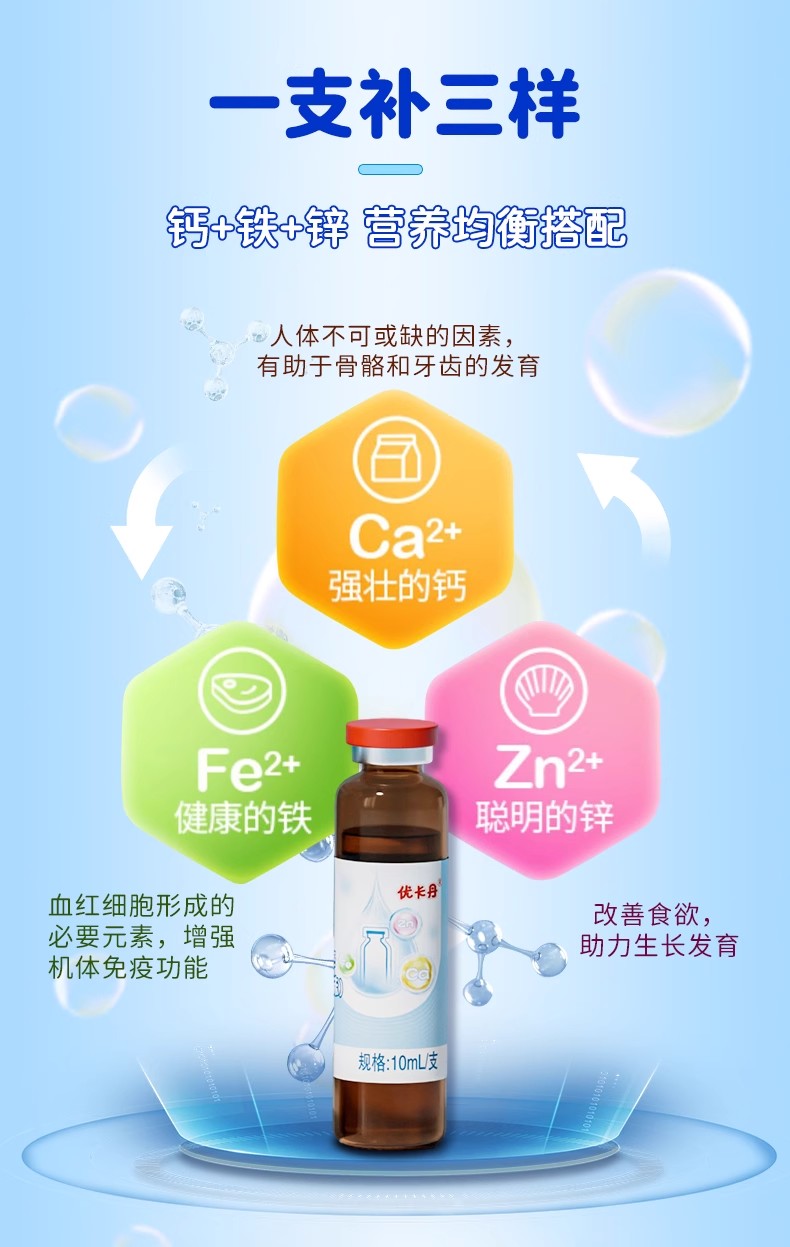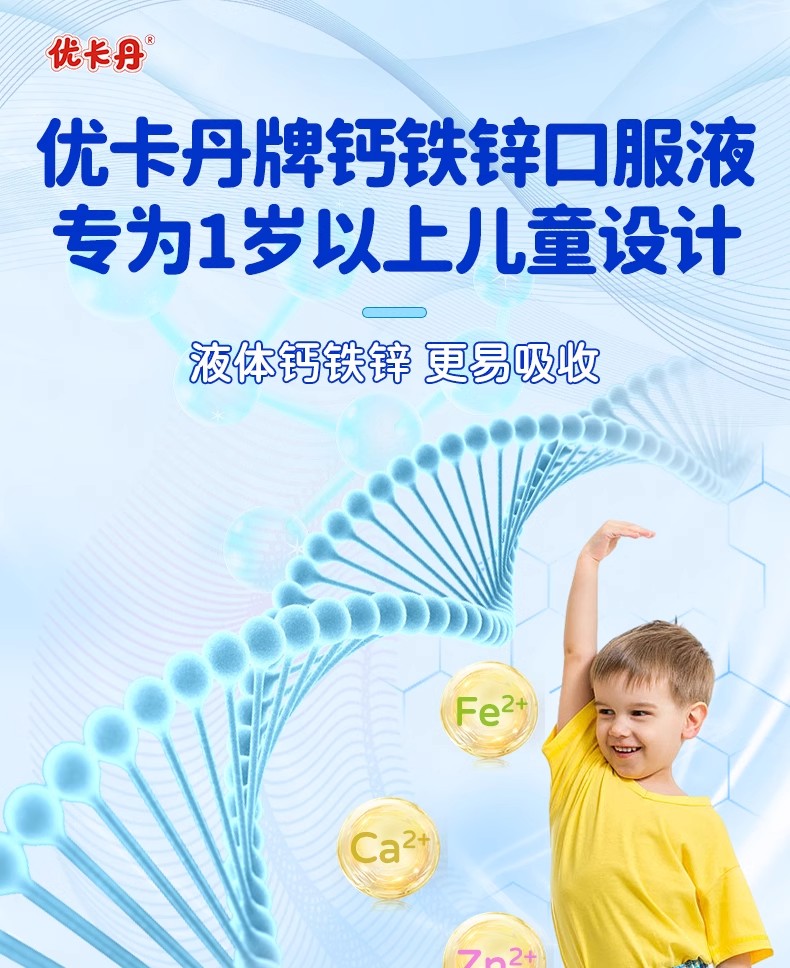优卡丹钙铁锌口服液水蜜桃味90支葡萄糖酸锌婴幼儿儿童青少年补钙补铁补锌营养液