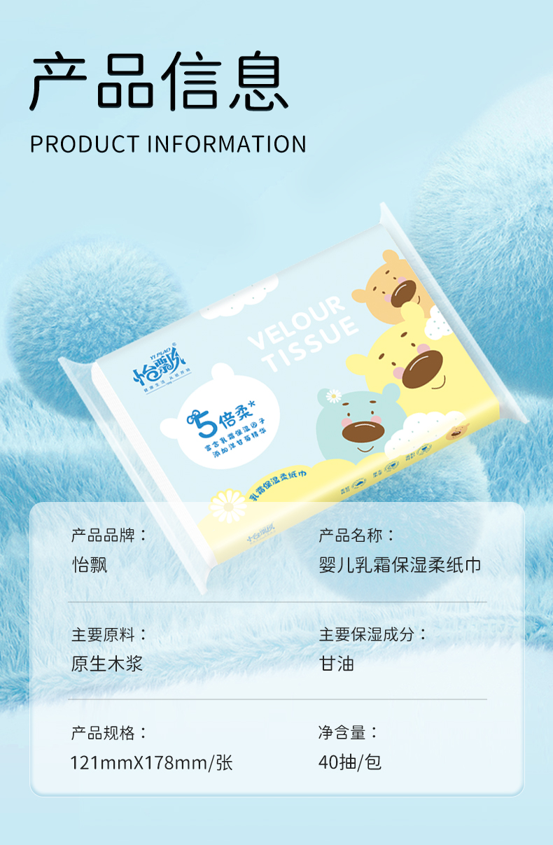 商品名称:【品牌直供 可心柔同款】怡飘婴儿乳霜柔纸巾宝宝专用保湿云柔巾擦鼻涕纸40抽*10包