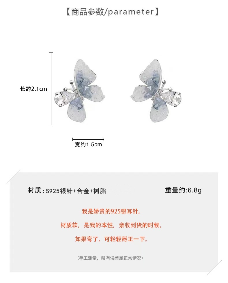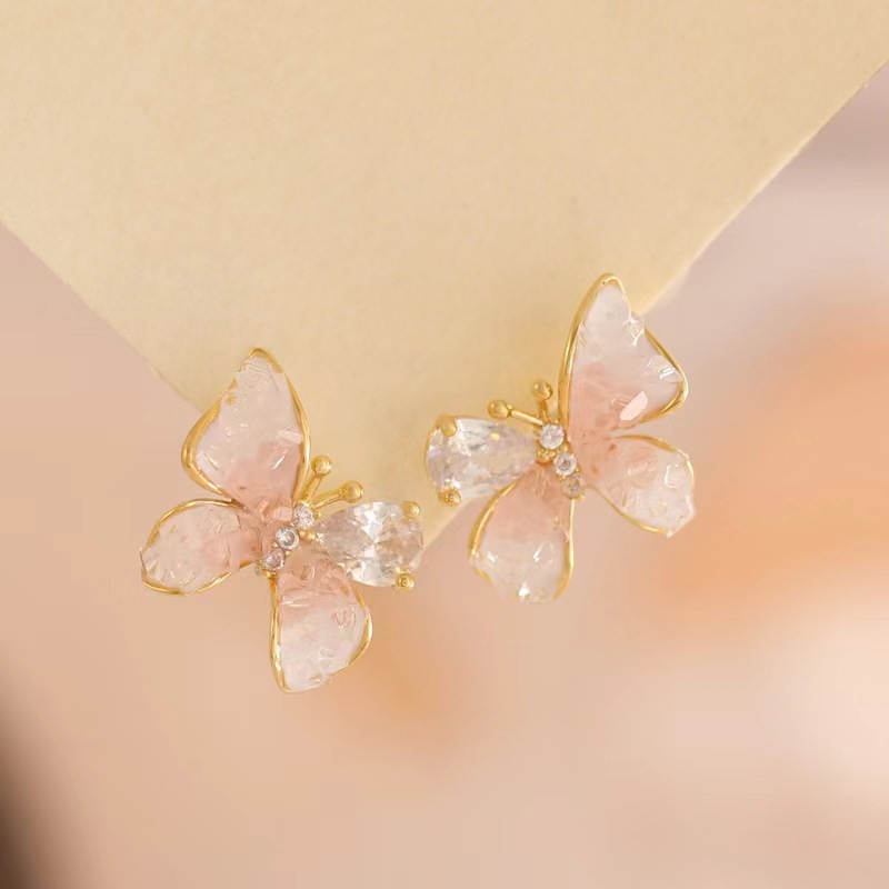 商品名称:彤彤兔 S925银针水晶蝴蝶耳钉小众轻奢高级感气质耳环女爆款耳饰