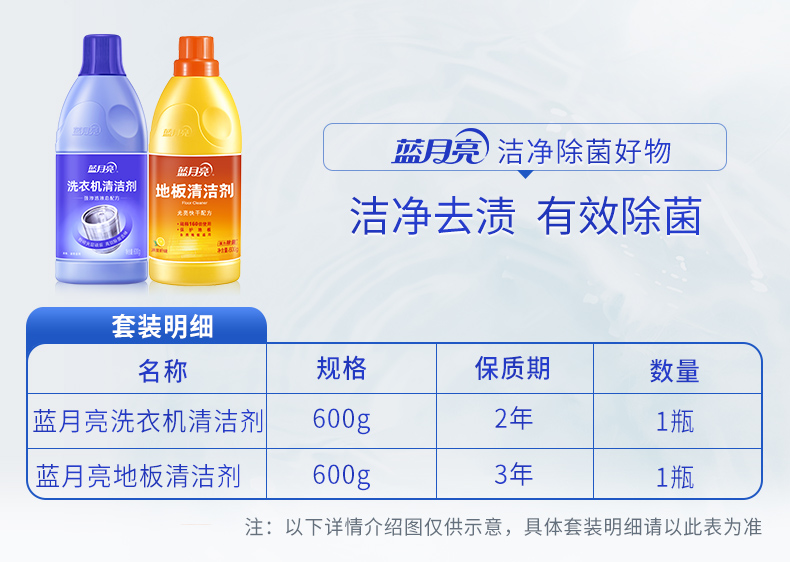 商品名称:蓝月亮 洗衣机清洁剂600g+除菌地板清洁剂600g