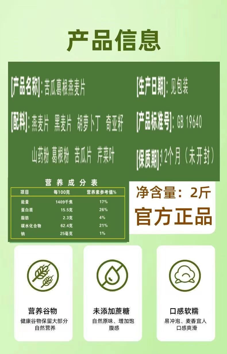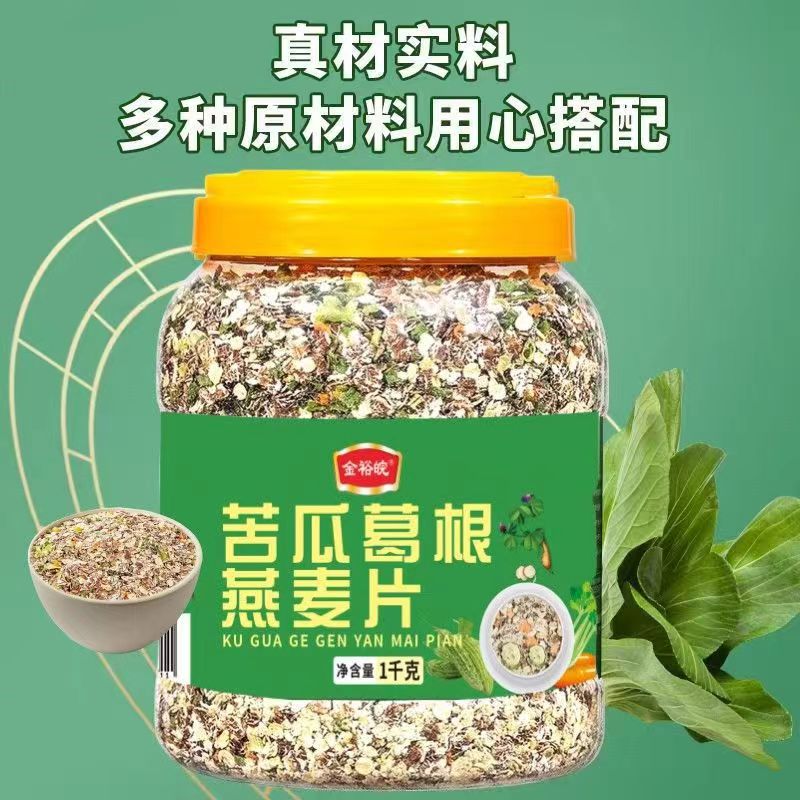 商品名称:金裕皖苦瓜葛根燕麦片1000g克/罐装即食免煮冲泡无添加蔗糖代餐黑麦燕麦片中老年