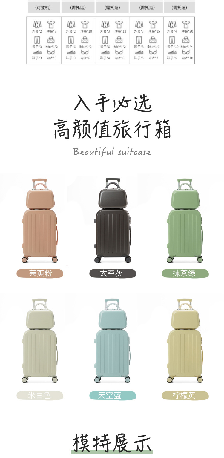 商品名称:彤彤兔 日系小清新行李箱女拉杆箱男结实耐用学生万向轮密码旅行 箱皮箱子拉杆