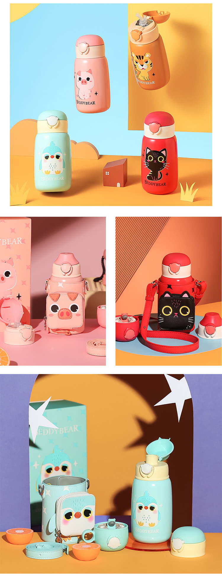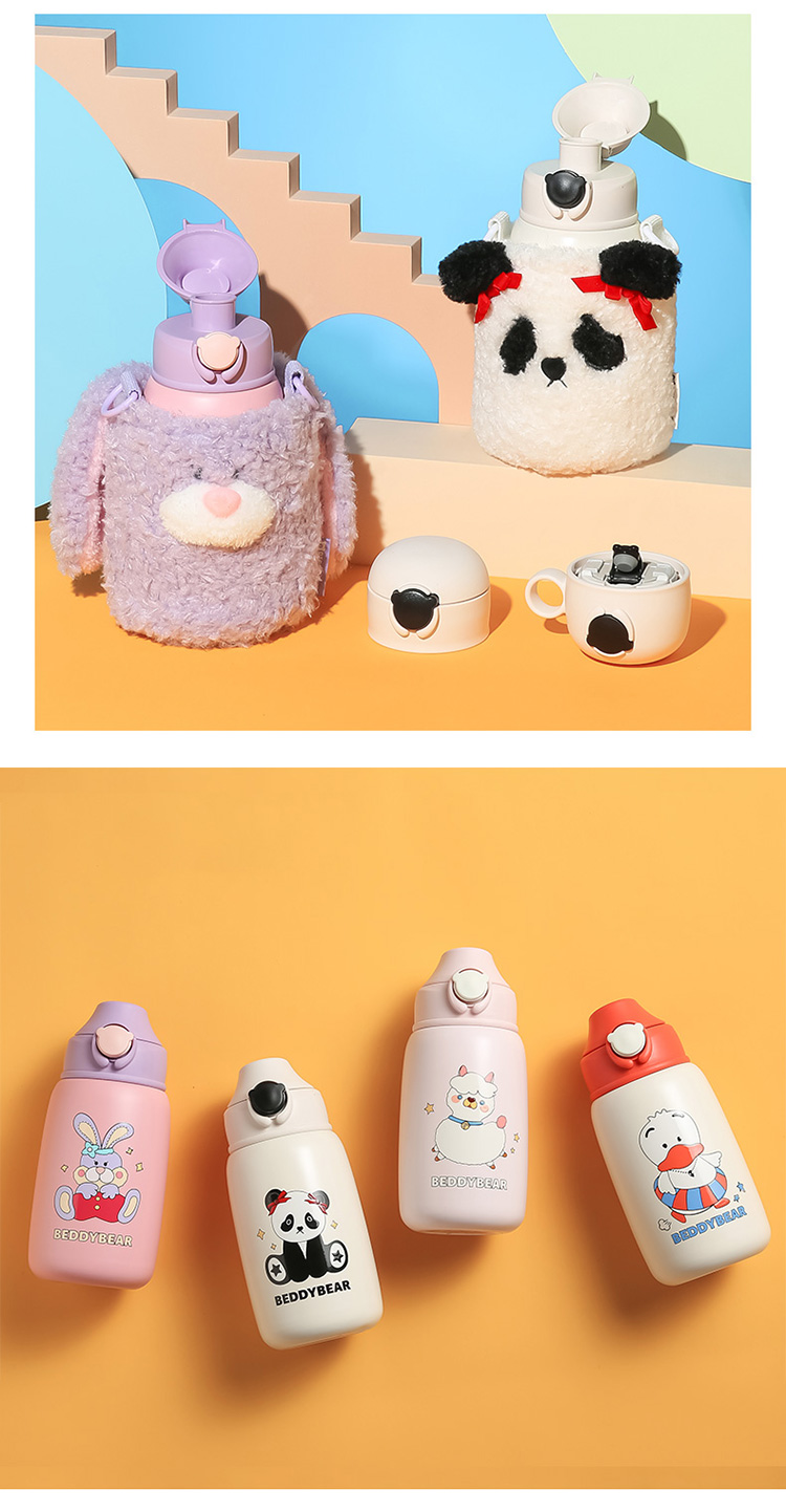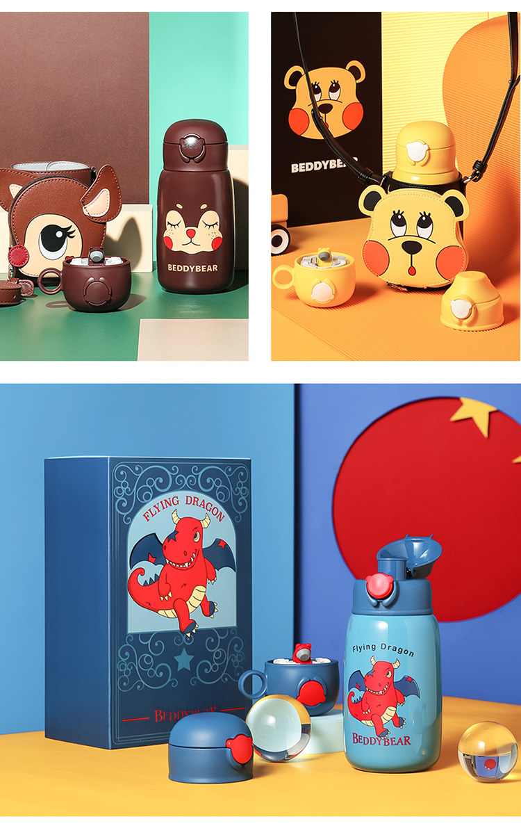 【品牌秒杀】杯具熊530ML 316内胆保温杯可爱大肚杯子带吸管大容量儿童三盖水杯