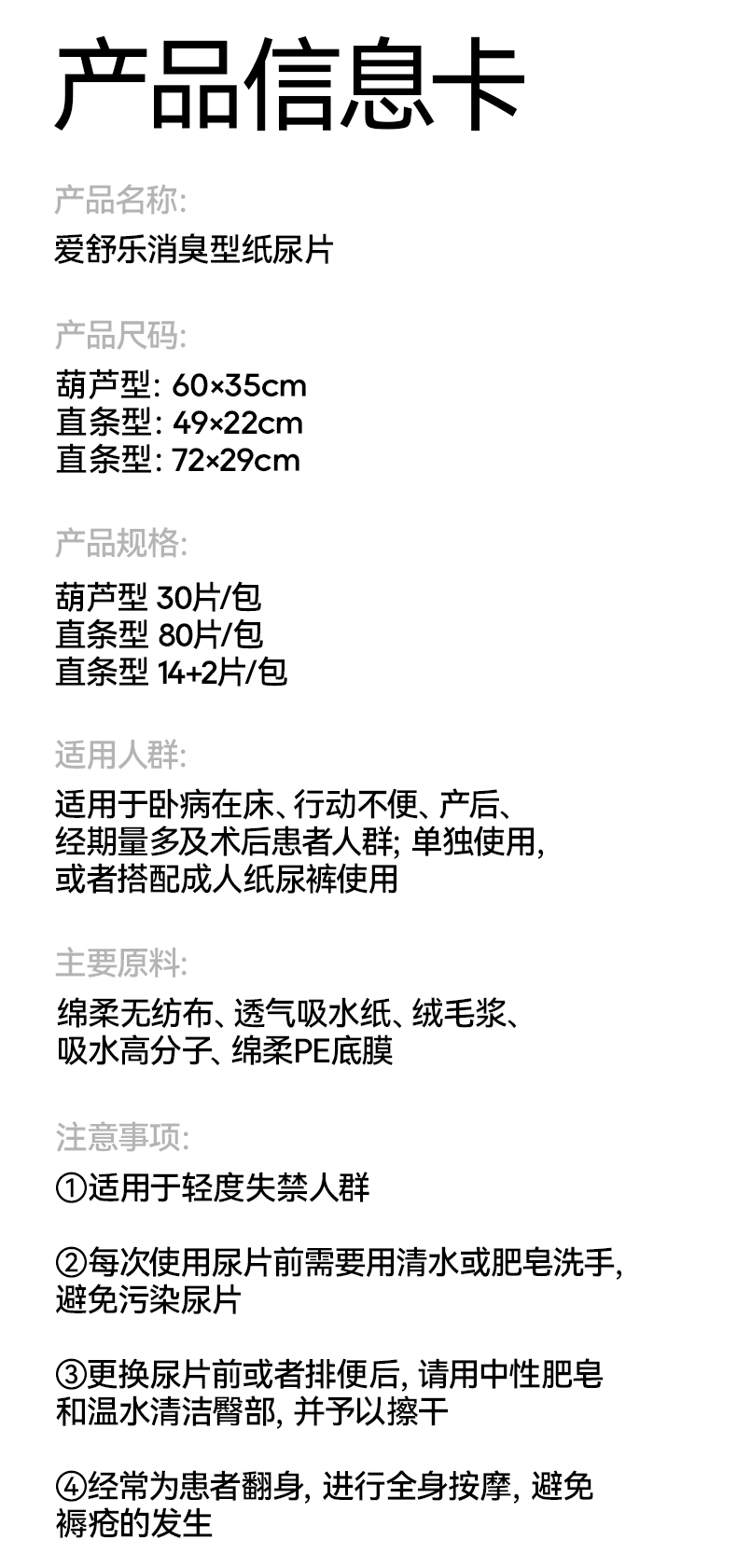 商品名称:爱舒乐成人纸尿片一次新护理尿垫XL码16片/ 包(长度720mm*290mm)