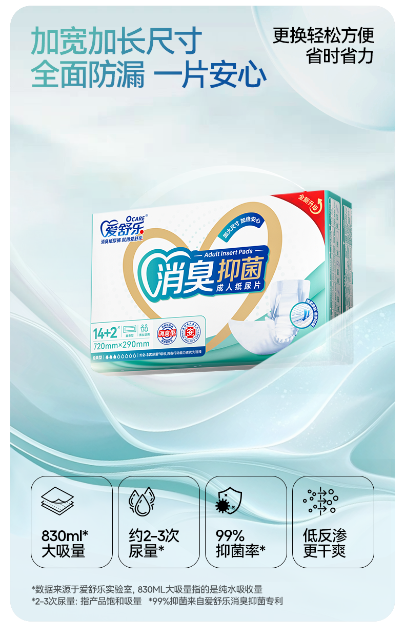 爱舒乐成人纸尿片一次新护理尿垫XL码16片/ 包(长度720mm*290mm)