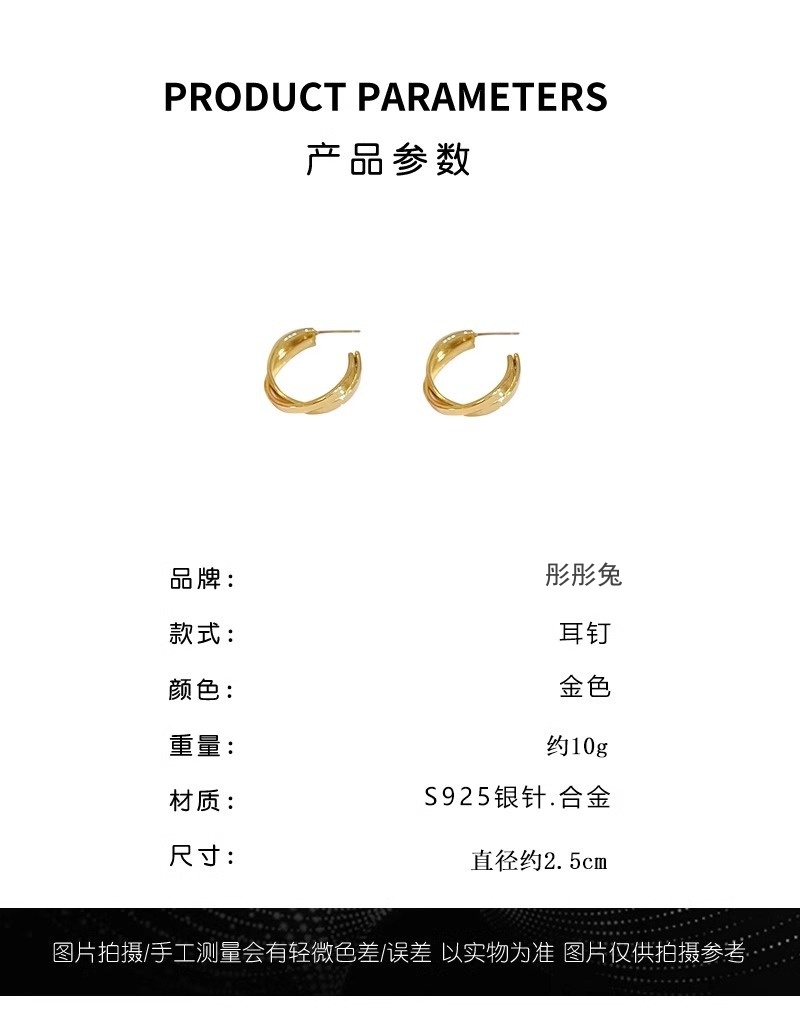 商品名称:彤彤兔 法式金属耳饰气质高级大气耳钉女士ins风925银针耳圈耳环显瘦圆脸