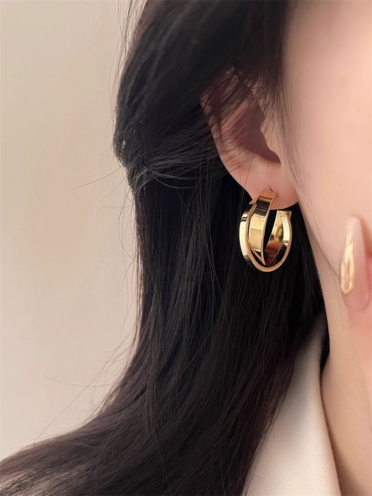 彤彤兔 法式金属耳饰气质高级大气耳钉女士ins风925银针耳圈耳环显瘦圆脸