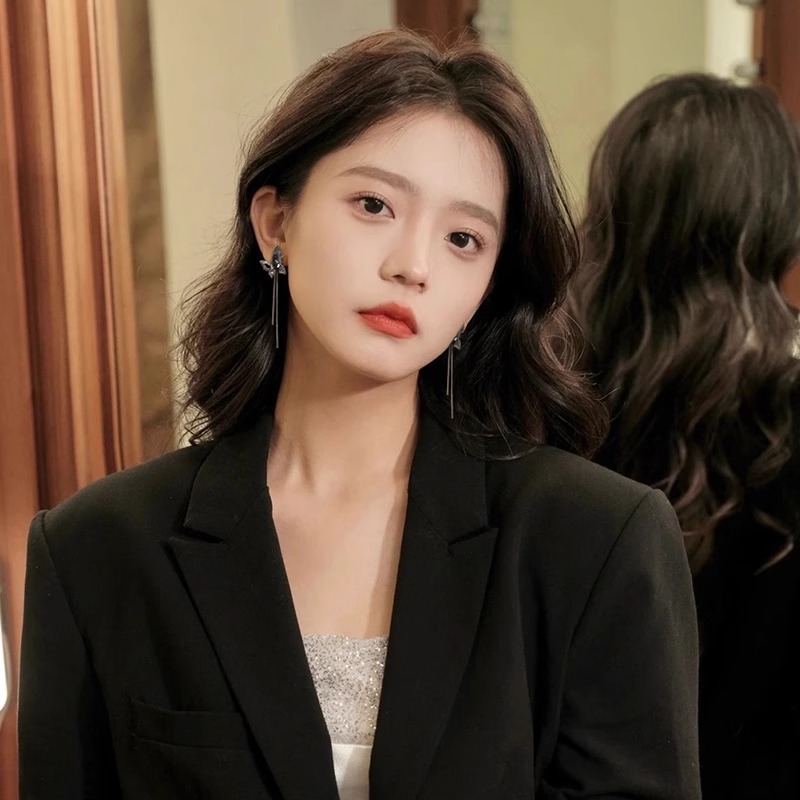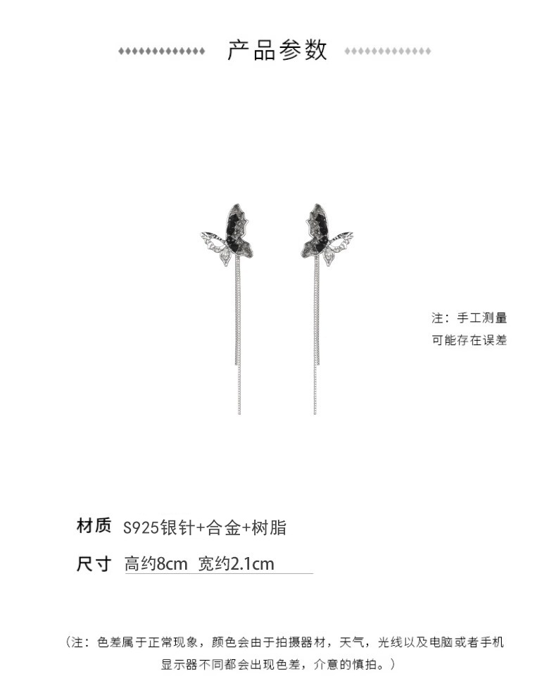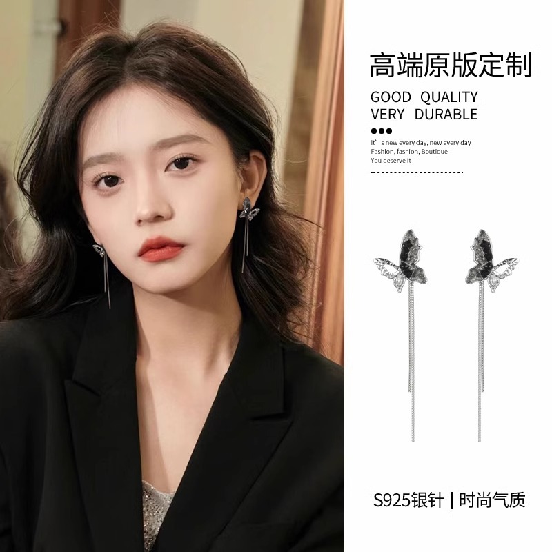 商品名称:彤彤兔 S925银针黑色水晶蝴蝶流苏耳环女高级感小众设计气质长款耳饰