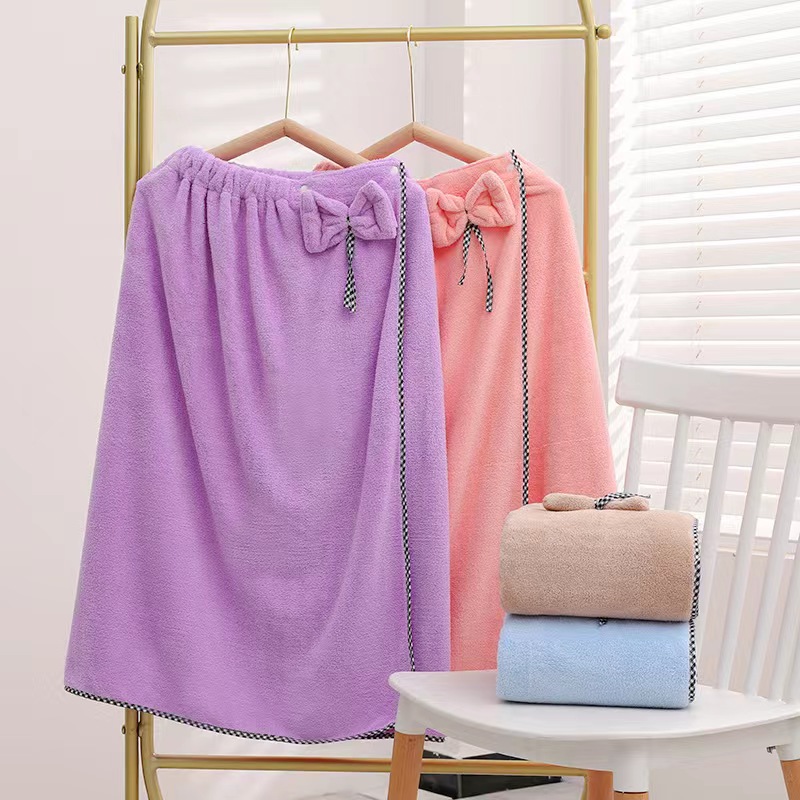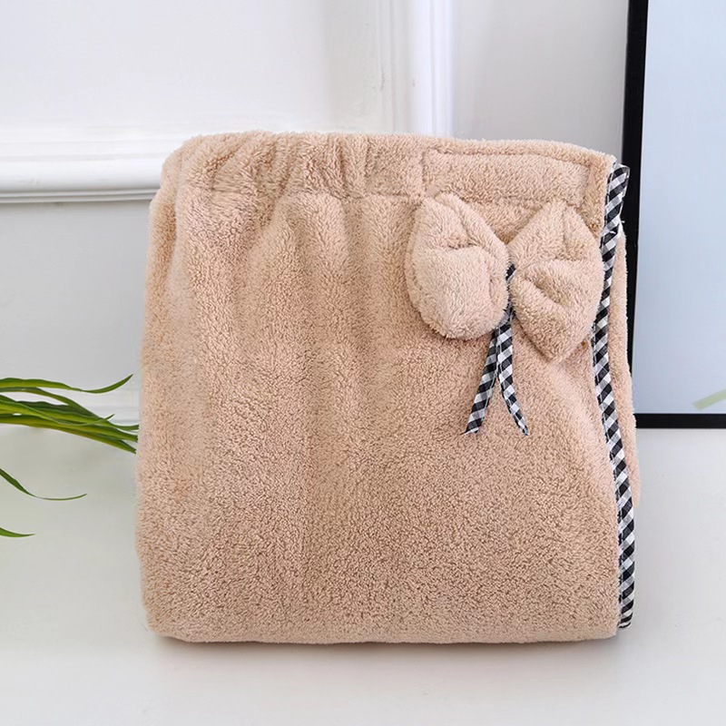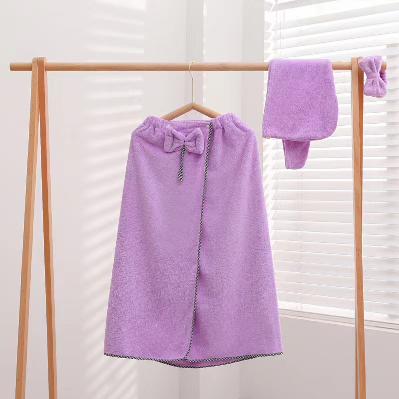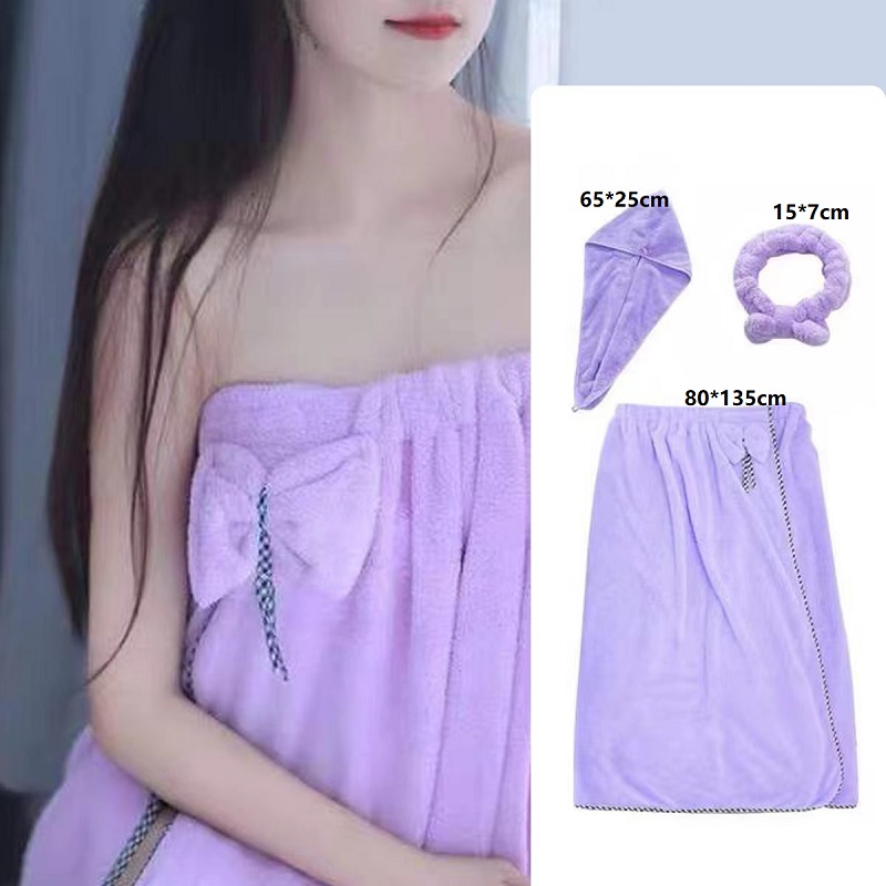 商品名称:【3件套】成人珊瑚绒可穿浴巾女士速干浴裙干发帽发带三件套件吸水沙滩巾