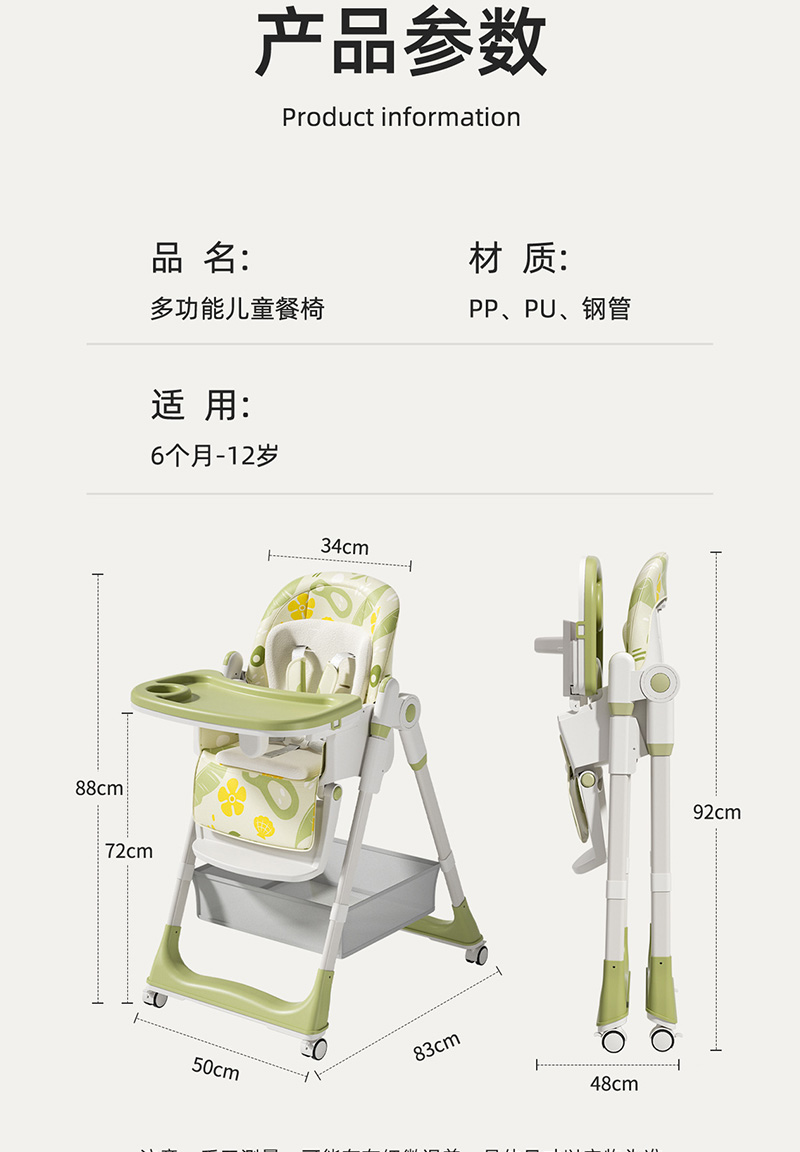 商品名称:成长型儿童餐椅婴儿吃饭便携式 可坐可躺桌椅子多功能宝宝餐椅餐桌椅