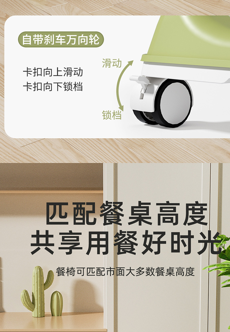 樱花粉餐椅+置物篮+护肩垫+万向轮