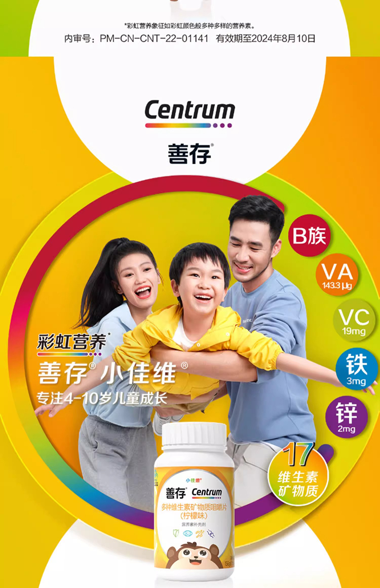 善存小佳维多种维生素矿物质咀嚼片40片儿童b族补充vc维C维生素c钙铁锌复合维生素钙片