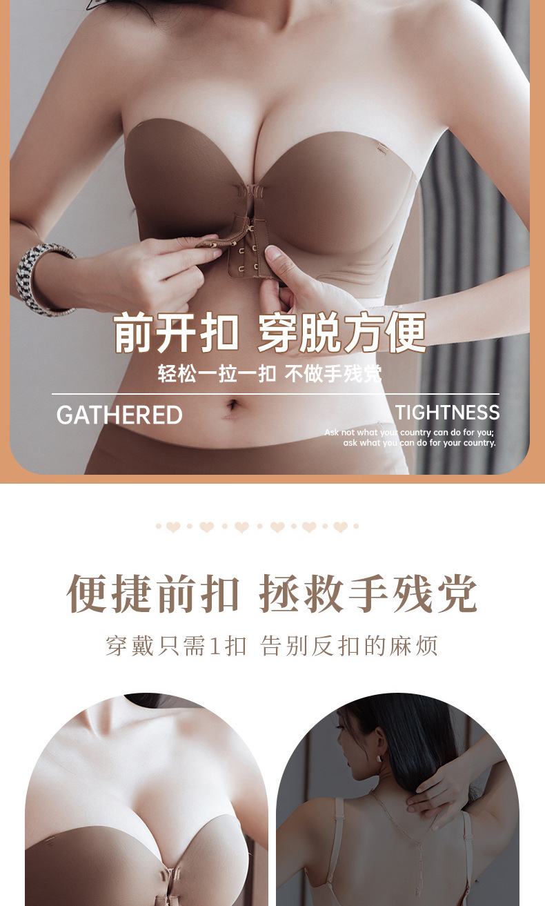 商品名称:蔓朵奇前扣无肩带内衣女聚拢防滑女士文胸