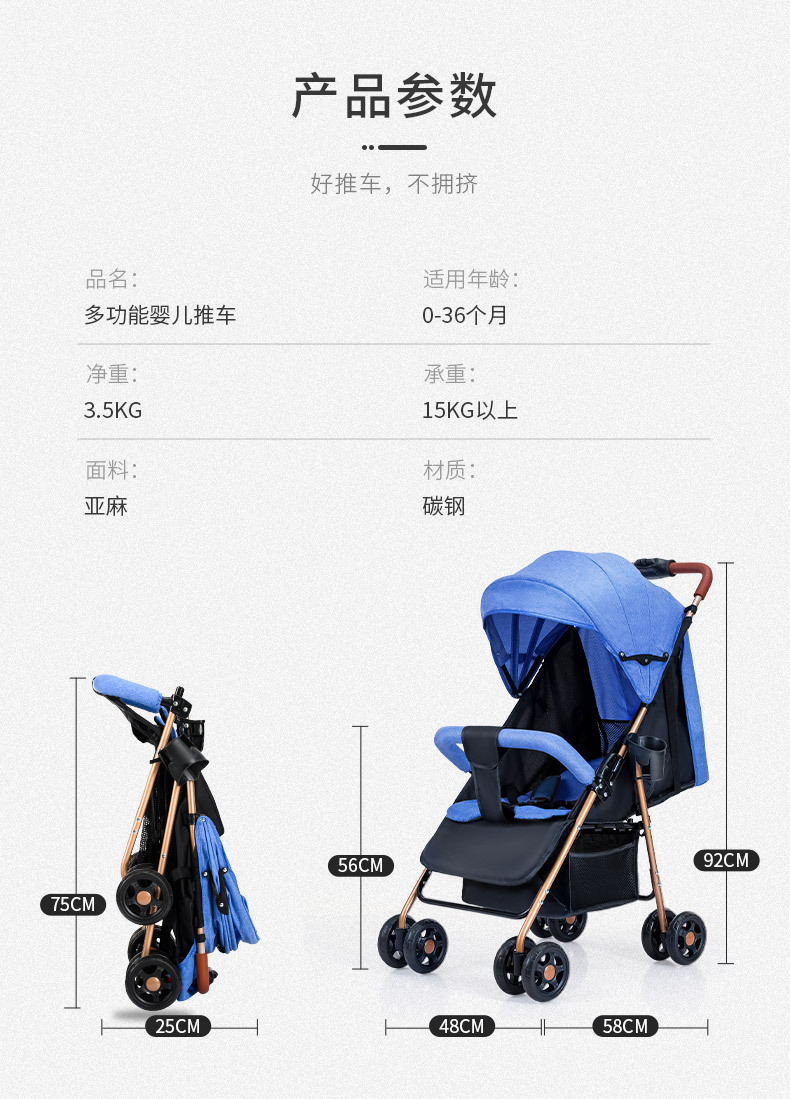 商品名称:兔小迪推车轻便折叠可坐可躺小巧 儿童宝宝车伞车童车手推车手推车轻便折叠