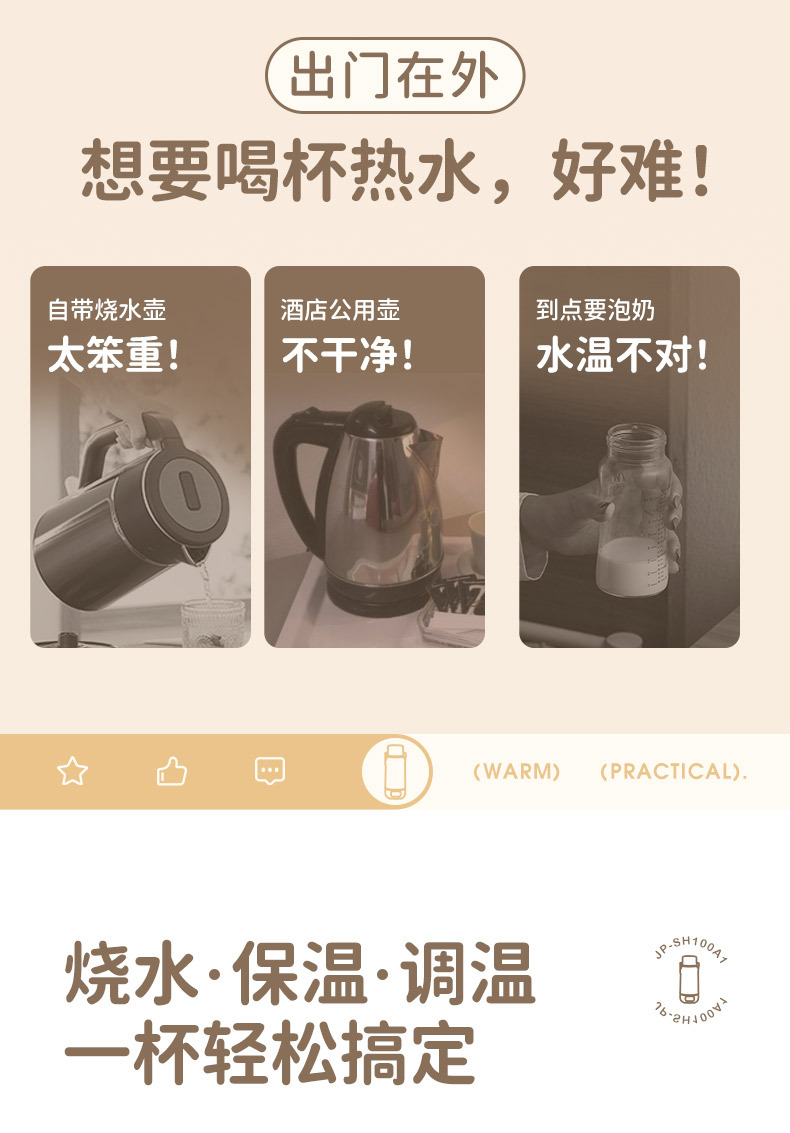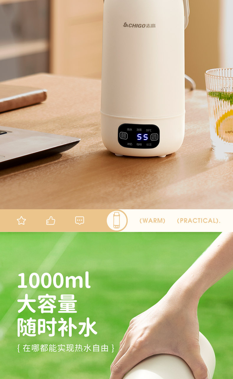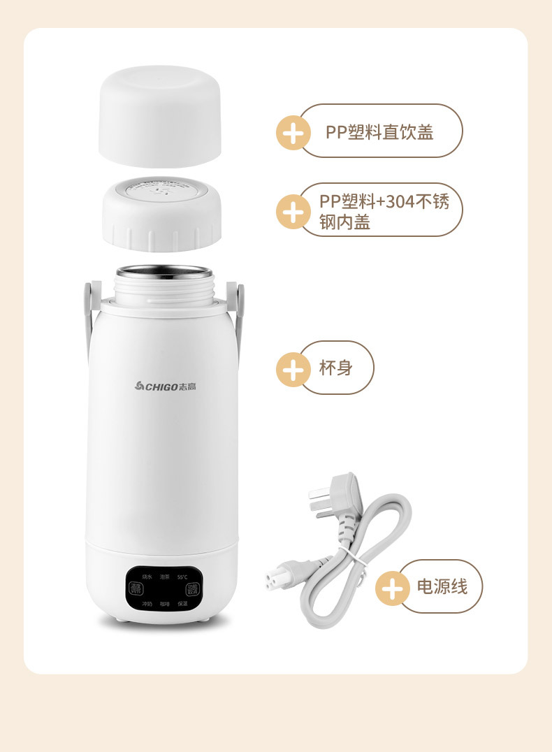 商品名称:可选充电志高烧水杯电热水杯便携式旅行加热杯烧水壶保温杯恒温壶温奶器暖奶器调奶器