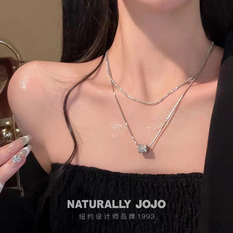 NATURALLY JOJO女士新款钛钢双层叠戴波光粼粼小蛮腰毛衣链项链饰品生日礼物