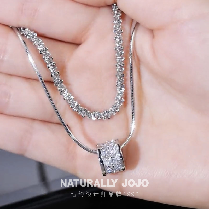 NATURALLY JOJO女士新款S925纯银双层叠戴仿珍珠项链锁骨链饰品女生生日礼物