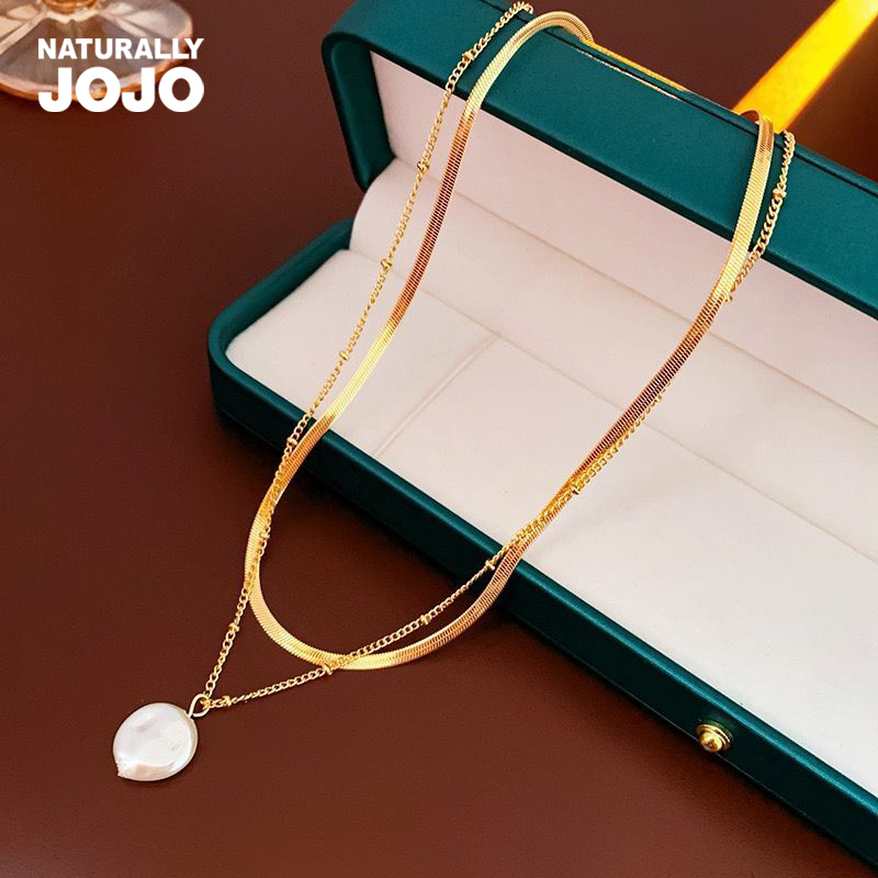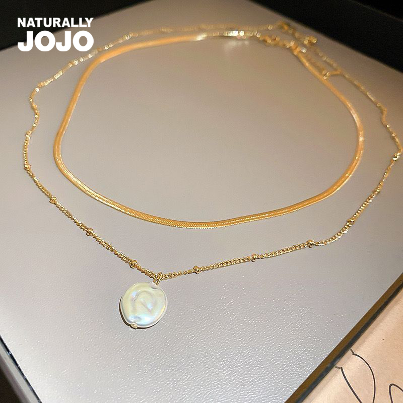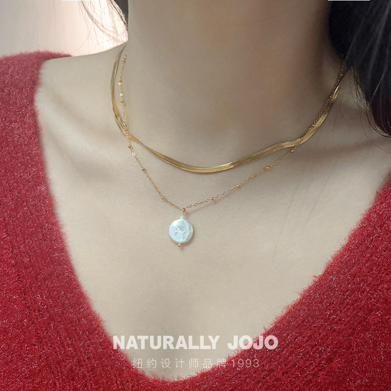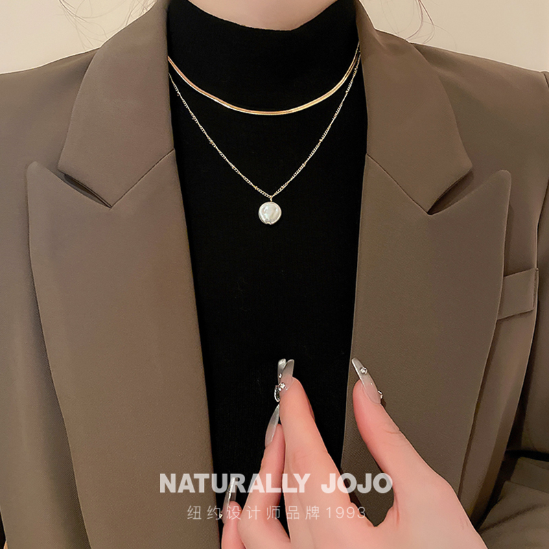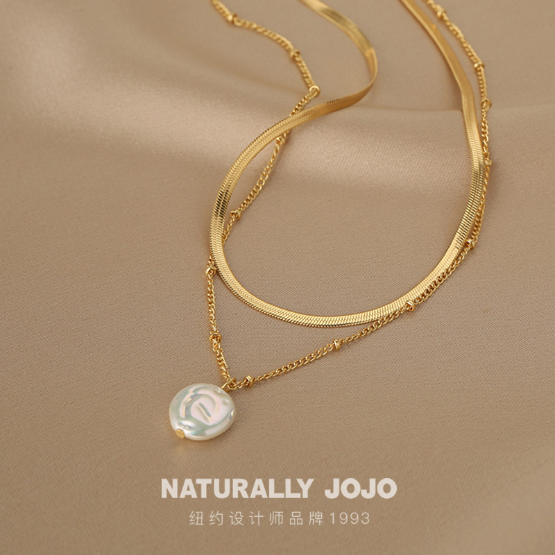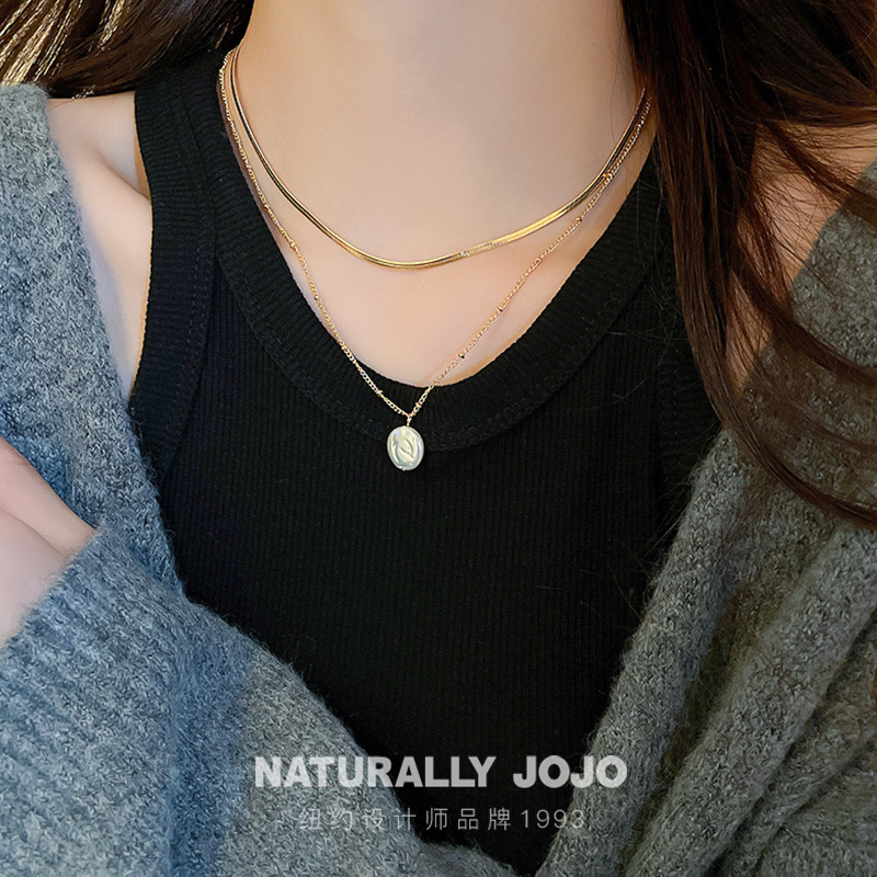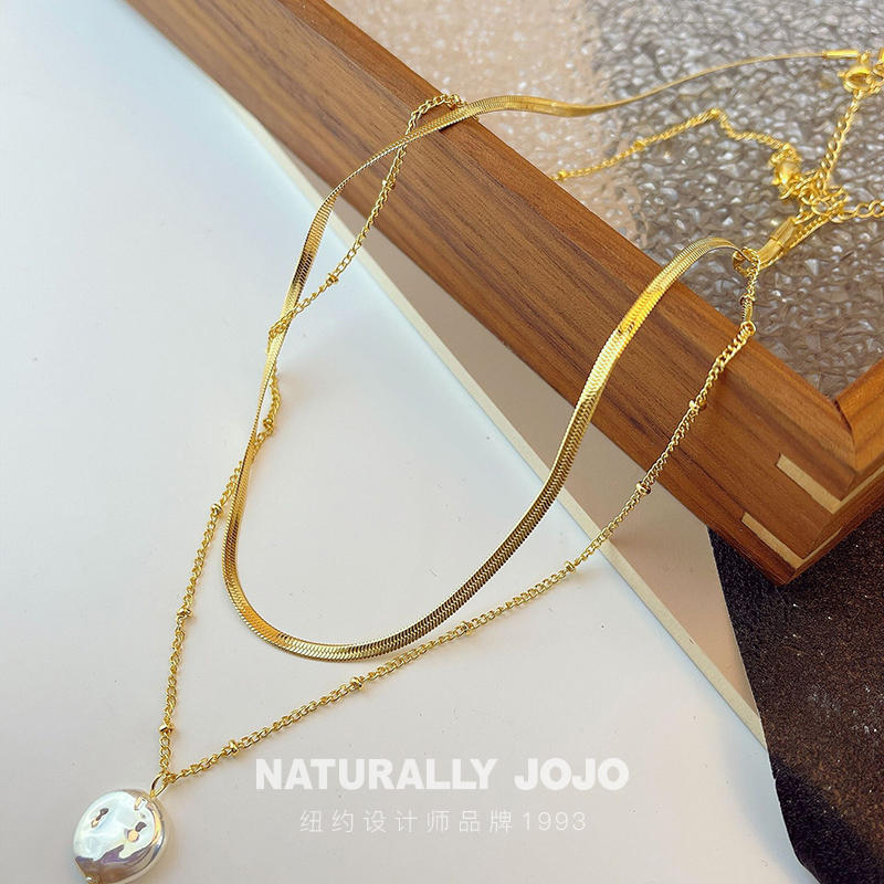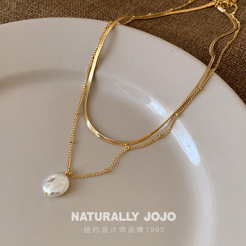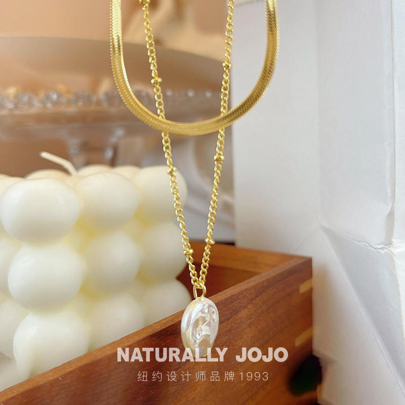 NATURALLY JOJO女士新款双层叠戴巴洛克珍珠蛇骨项链女轻奢小众设计高级感百搭短款毛衣链