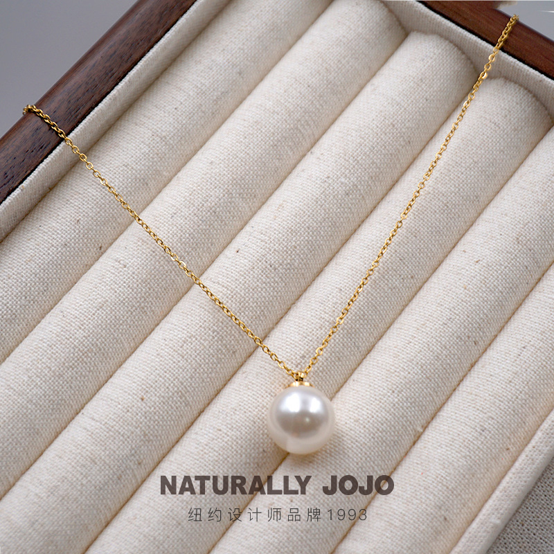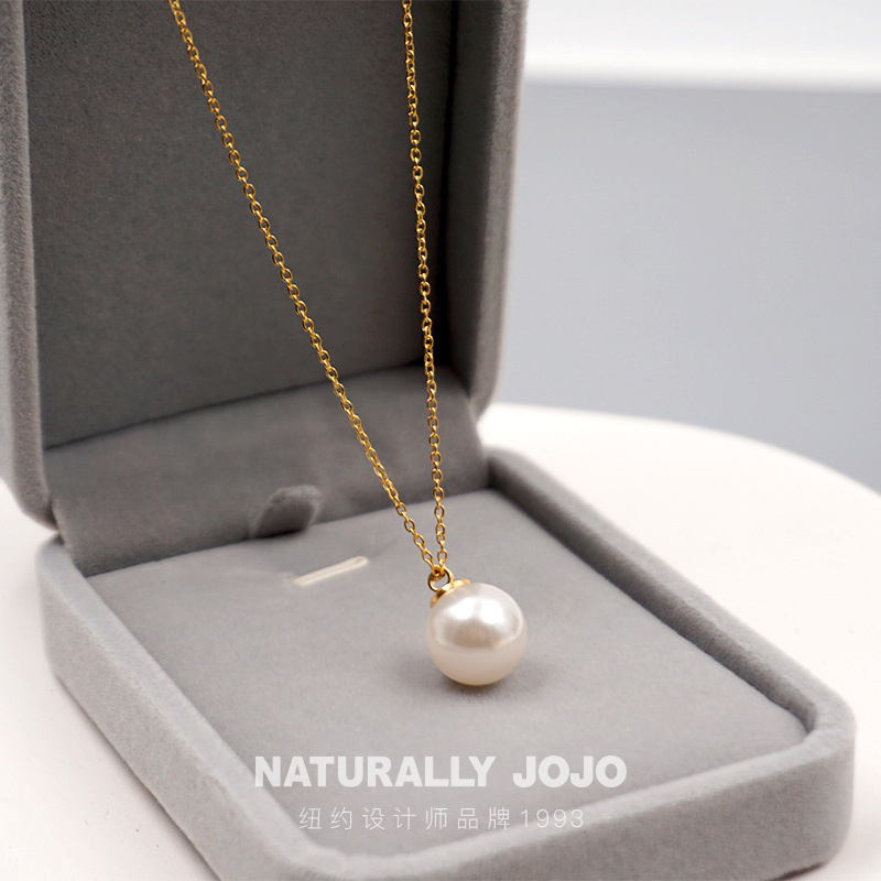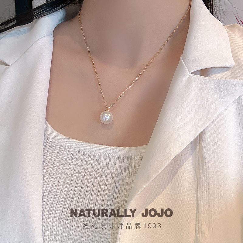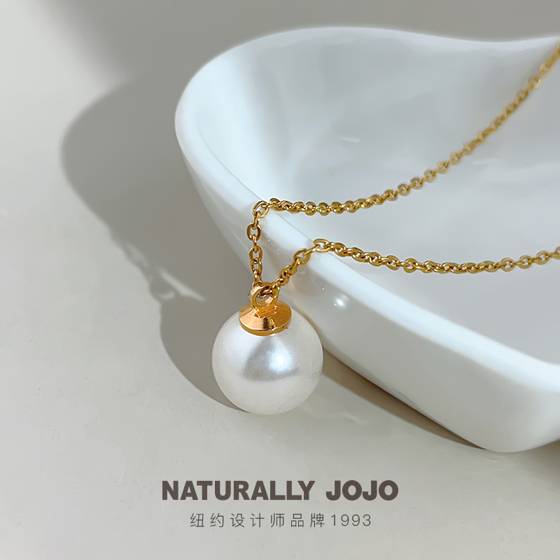 NATURALLY JOJO女士新款简约正圆奶白色仿珍珠项链饰品锁骨链生日礼物