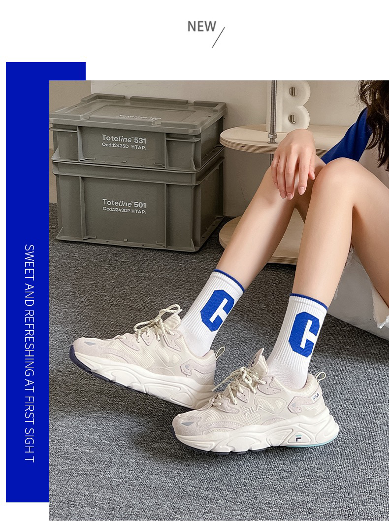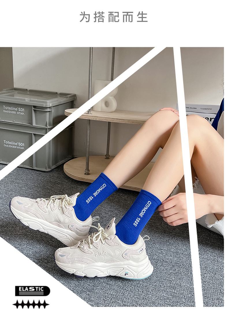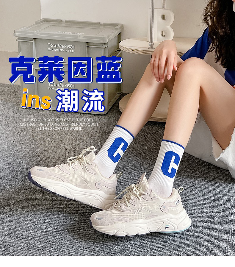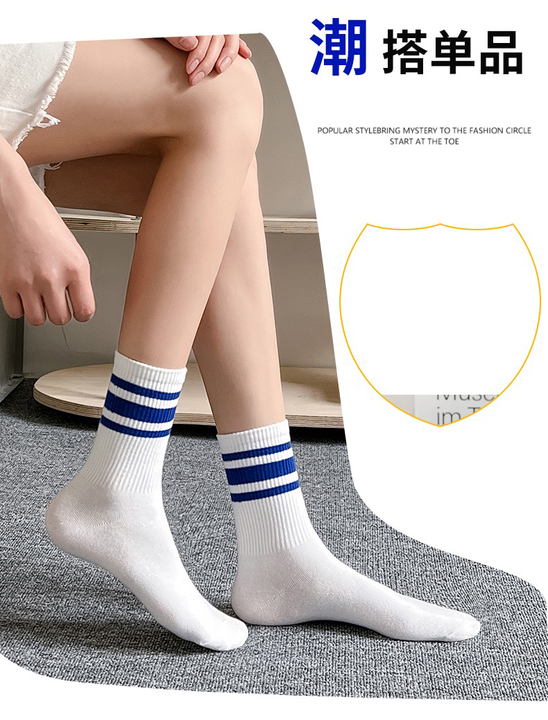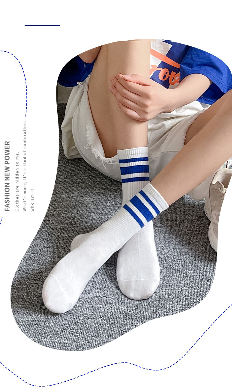 商品名称:【4双装】朝暮栖止女士印花潮流大C款蓝色系中筒棉袜子