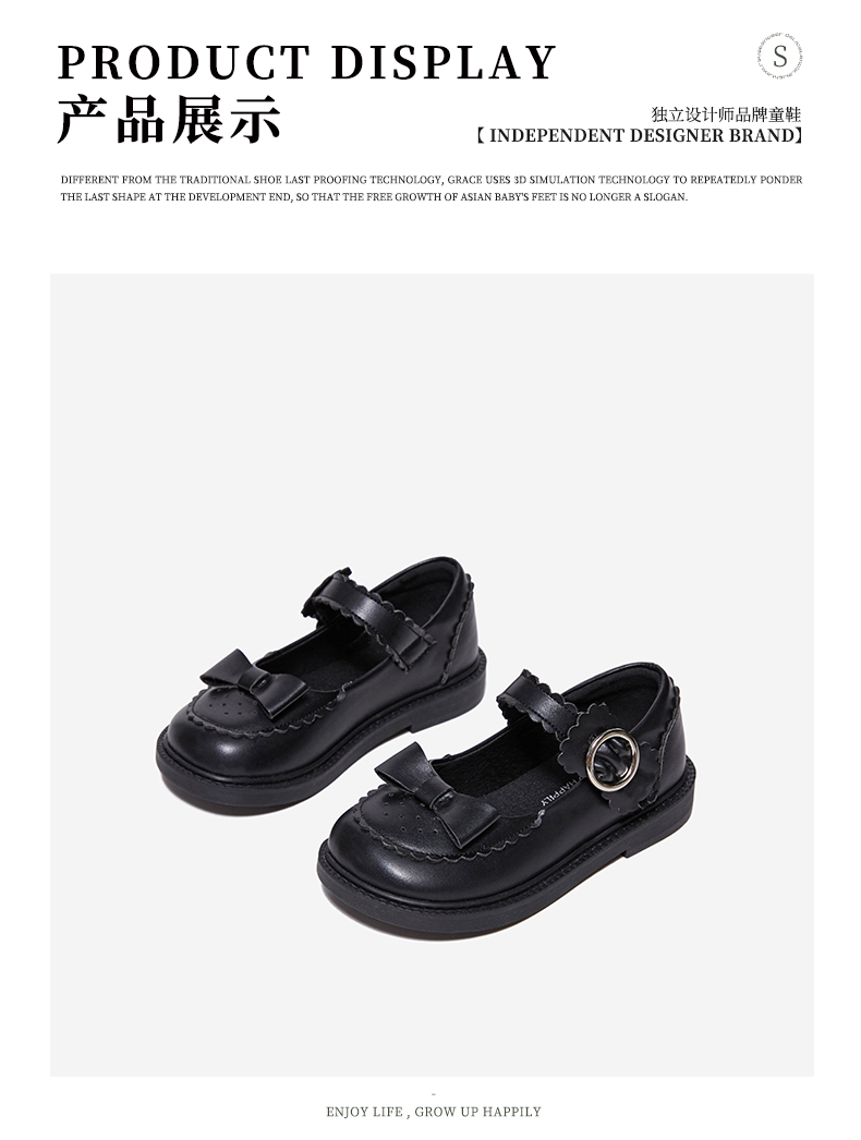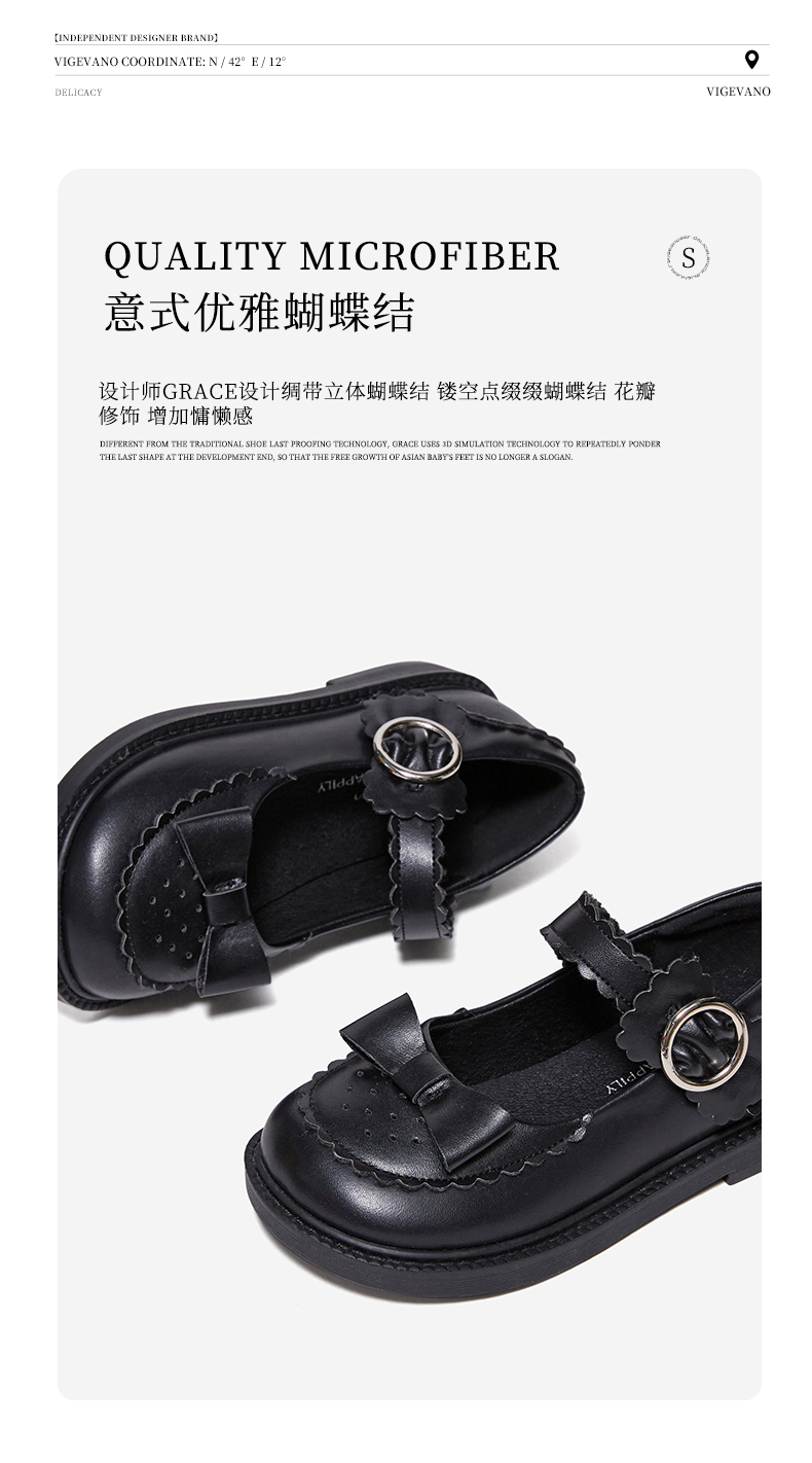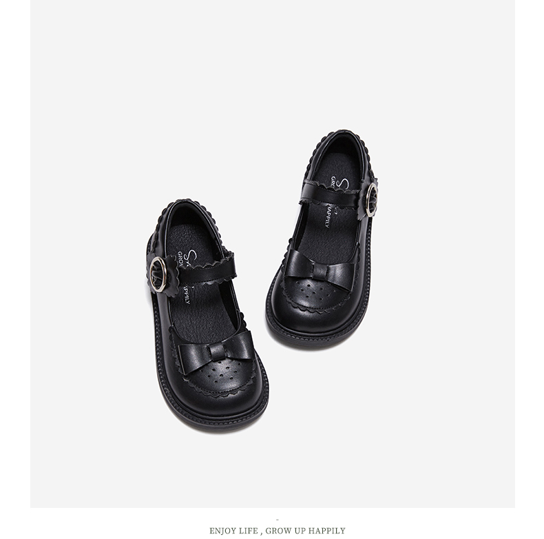 斯纳菲女童皮鞋秋季新款儿童公主鞋黑色时尚小女孩软底单鞋子
