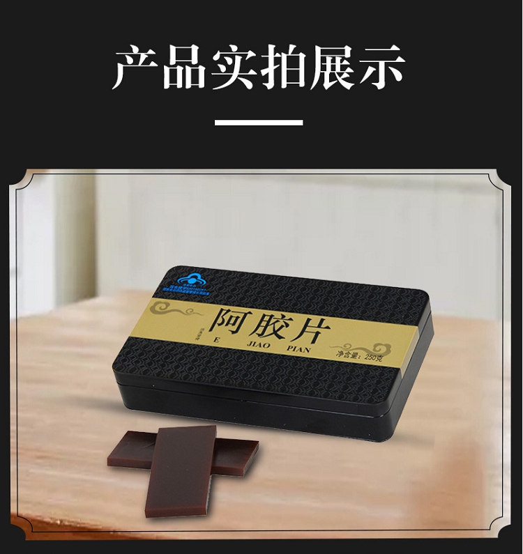 商品名称:山东阿胶片250g/盒装阿胶驴皮熬制阿胶糕固元膏东阿黑驴皮阿胶块